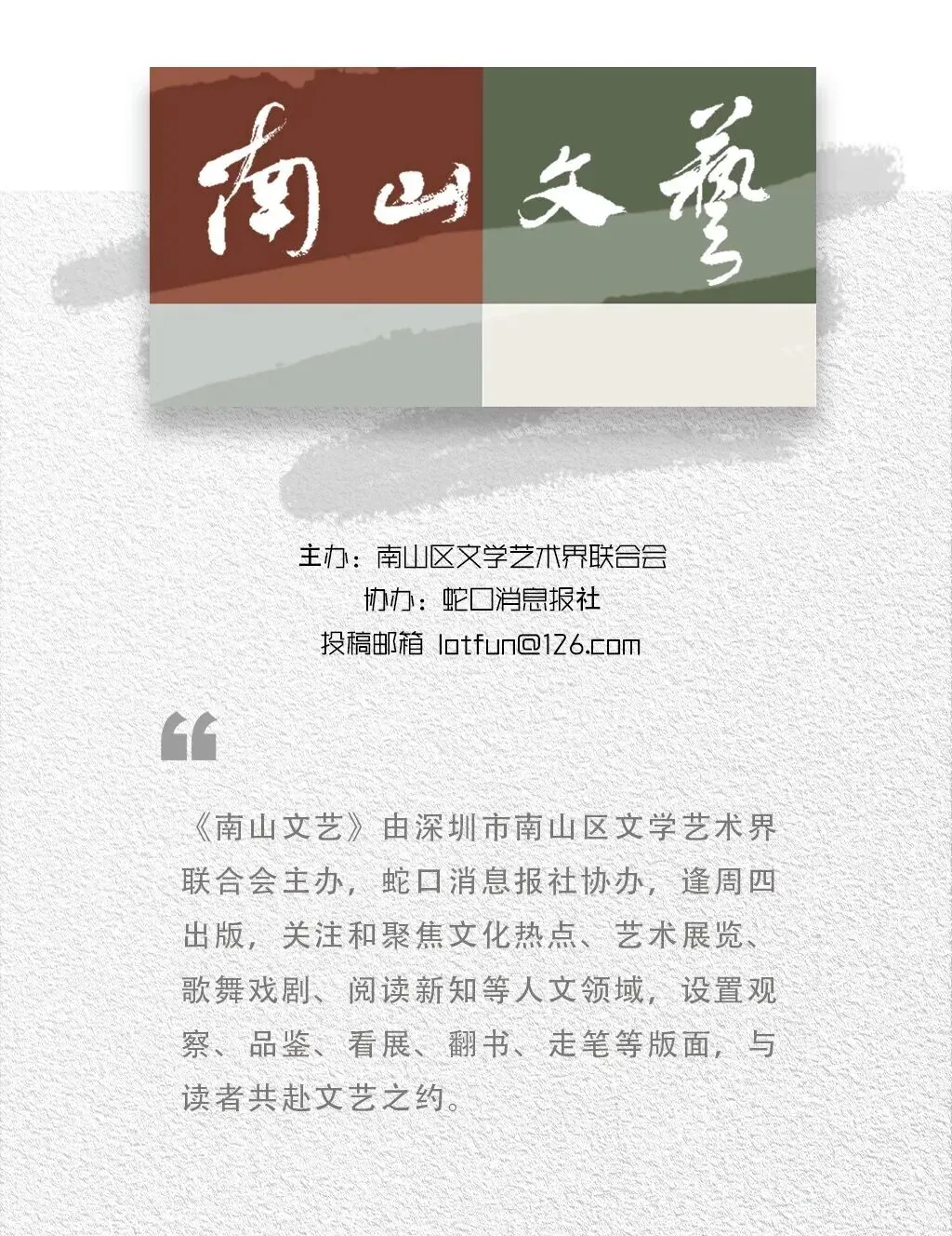 本期《南山文艺》从艺术周众多活动中特别圈划出一张精选的“艺术打卡地图”,邀请广大读者在艺术的生产和展出现场,以及实地漫游和多方对话中,通过观看、走访、提问等多种形式和维度,达成与艺术的深度碰撞。