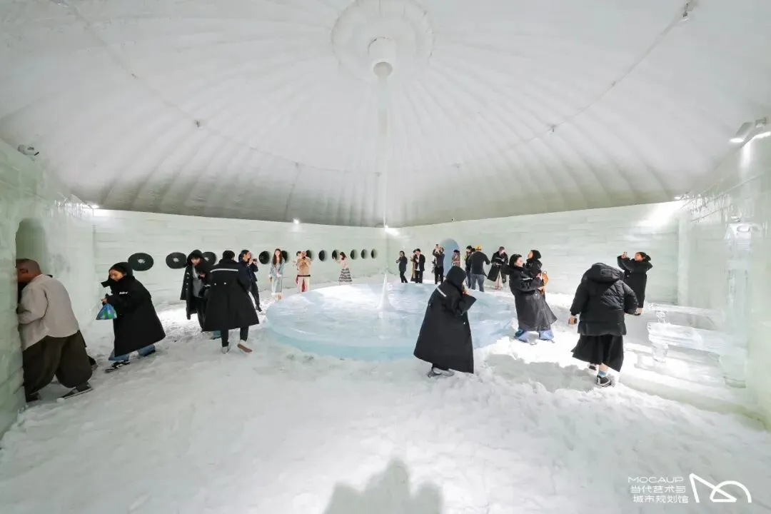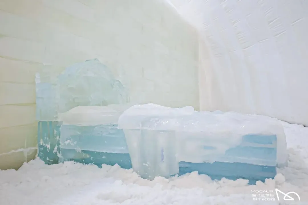 擅长多领域跨媒介创作的当代艺术家沈少民以两个巨型气膜结构,构筑了一处关于“冬”的沉浸式现场——观众步入封闭的白色空间,仿佛闯入一个被切割出的季节片段:气膜中持续飘落的雪在地面自然堆积,最高处可达三十厘米,脚下、身边与空气中都充满真实而冷冽的触感。在持续飘落堆积的雪、缓慢变化的冰与水之中,观众可以通过本次展览步入一个被截取与保存的冬日现场,在南国的暖阳下,在身体感知与记忆之间,重新体验冬天。