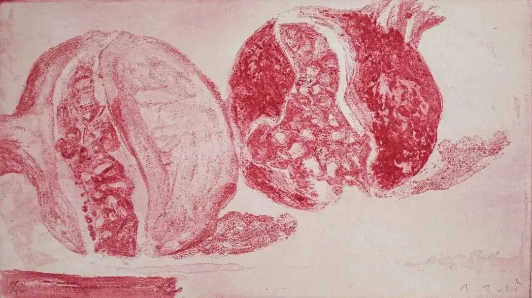 石榴始终作为一个视觉母题贯穿东西方艺术。艺术家严善錞以铜版画开启全新创作,将视角对准了石榴,呈现一组在东方语境下展开的象征性叙事:每幅画面都如独立的视觉诗,裂开的果实和堆积的籽粒既指向生命的脆弱,也呈现生命的丰盛。它不仅是一组关于果实与色彩的视觉作品,更是一份跨越文化与时间的宣言。