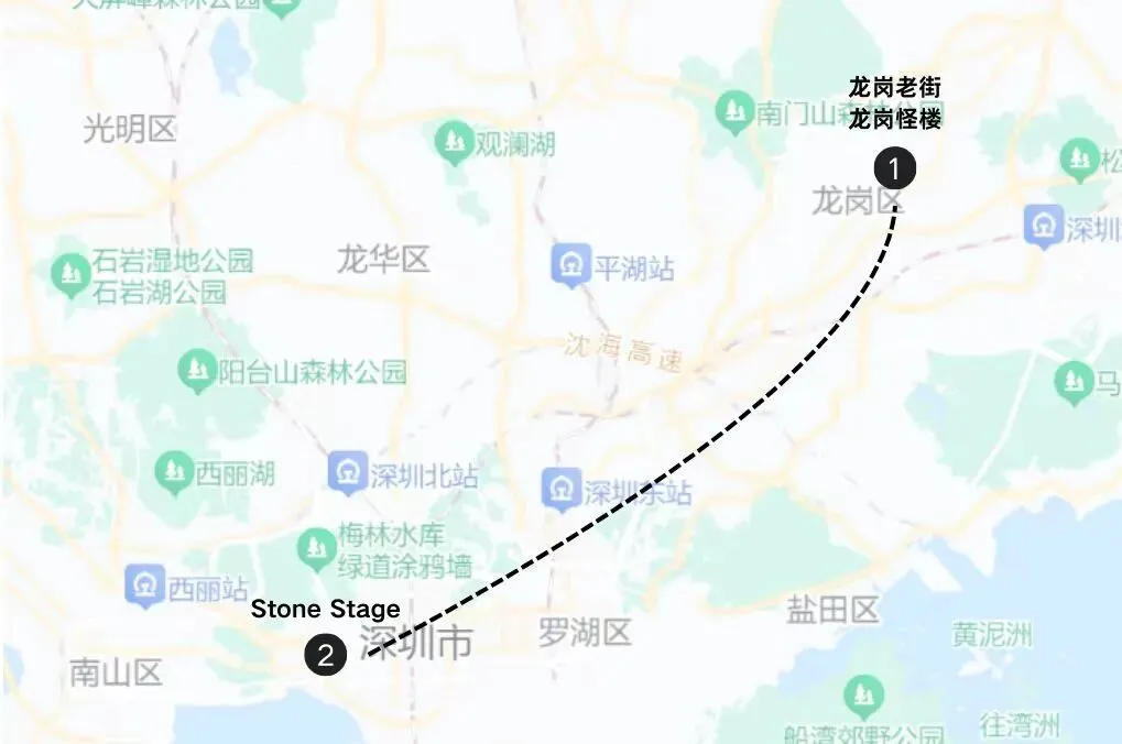 路线将以艺术家张胜佳的影像作品《龙岗怪楼》为线索,探访深圳知名都市传说龙岗怪楼。这是一座由香港商人自上世纪70年代起开始建造的私人住宅,楼高共11层,是一座上大下小的混凝土碉楼。在一片矮楼瓦房中,怪楼以不合比例的尺度和形态显得异常突兀,长期封闭的状态使它成为传闻中的“疯子的迷宫”“鬼屋”“金屋藏娇”“风水长命塔”“战争避难所”。怪楼所在的龙岗老街旧称龙岗墟,主体的三街六巷围绕着中心的榕树头排布开来,是历史上惠东宝三县的商贸中心,保有许多清末民国时期的建筑与客家族群的历史印记。路线还将探访Stone Stage思动思德局编辑部,并在这里进行《龙岗怪楼》影像放映与映后对谈。