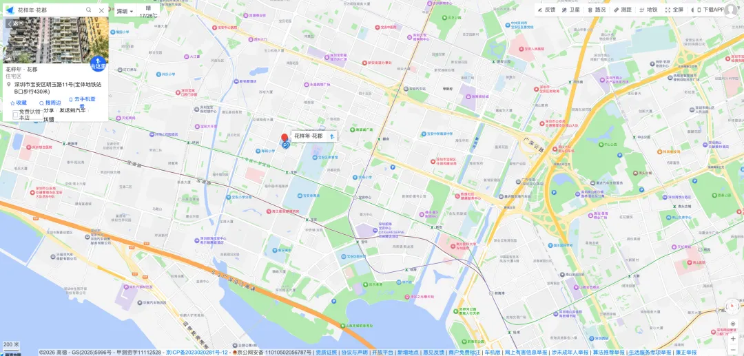 2、交通出行:出小区约150米就是1号罗宝线地铁宝体站B出入口;开车出小区约4分钟即到宝安大道,2个红绿灯到创业一路