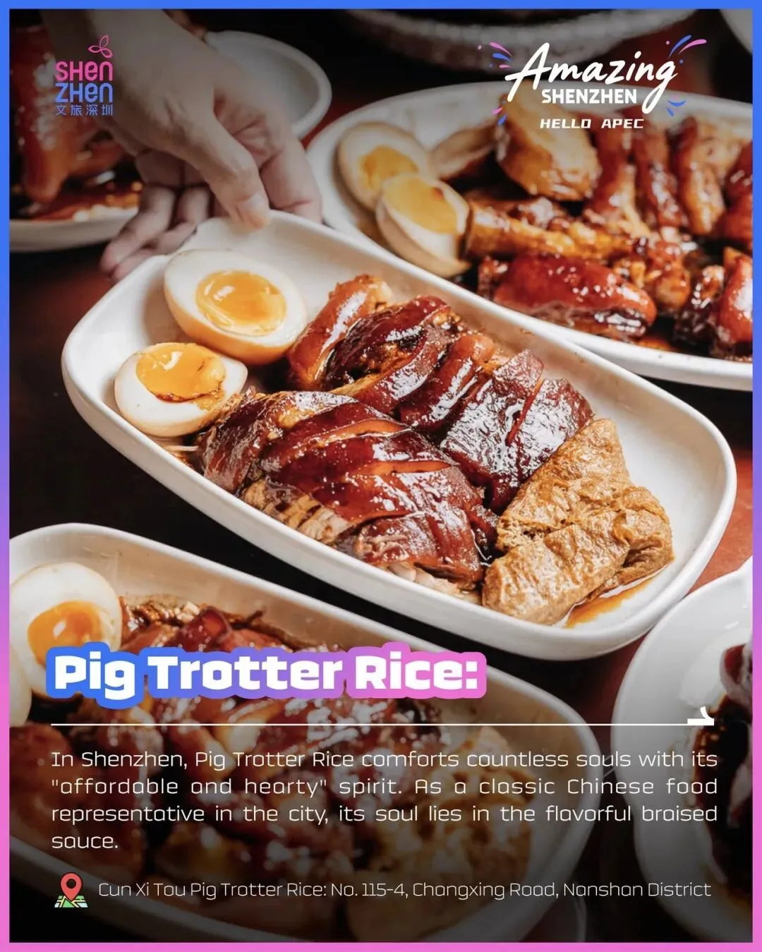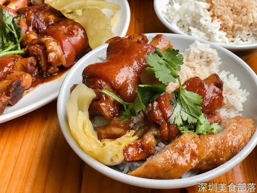 这家“村西头猪脚饭”对风味的执着,从食材源头便已开始。每日四百斤新鲜猪肘直送到店。由隆江大厨坐镇,以地道卤汤文火慢卤四个钟头,猪脚在浓汤中翻滚,逐渐染上诱人的酱色。懂行的食客进门必点“四点金”——这是猪脚中仅含皮与筋的黄金部位,每日限量。