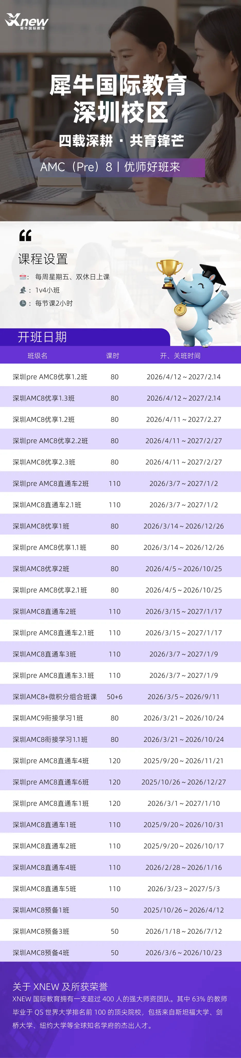 犀牛教育深圳校区AMC8竞赛培训课程,班型丰富,适合3-7年级不同基础的学生,南山/福田两大校区,线上线下同步开课中!
