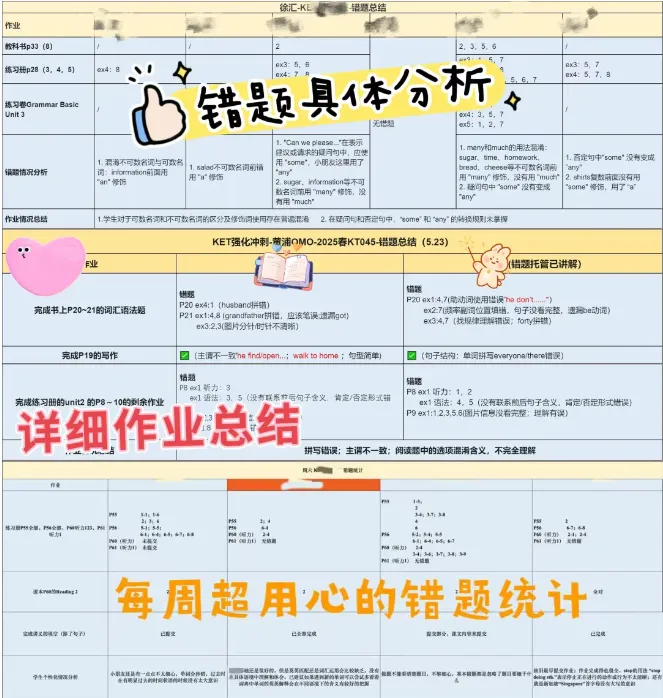 作业批改:课后作业,逐一批改反馈,帮助孩子及时巩固。