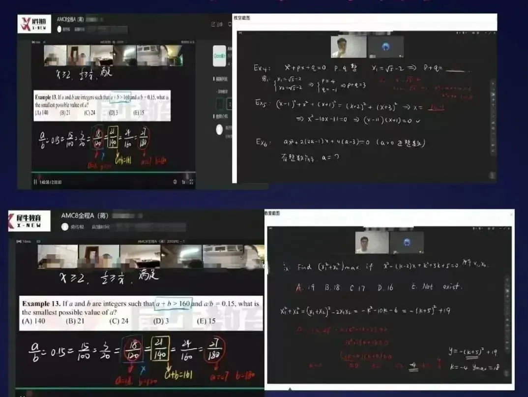 AMC8竞赛培训课程也可以进行线上直播课程,打破空间限制,享受与线下同品质的教学服务。线上课程支持实时互动、课后回放,学习更灵活。