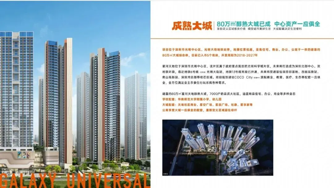 建面约80万㎡星河天地醇熟大城,7000户的品质大社区,涵盖精品住宅、办公、商业等多种业态。