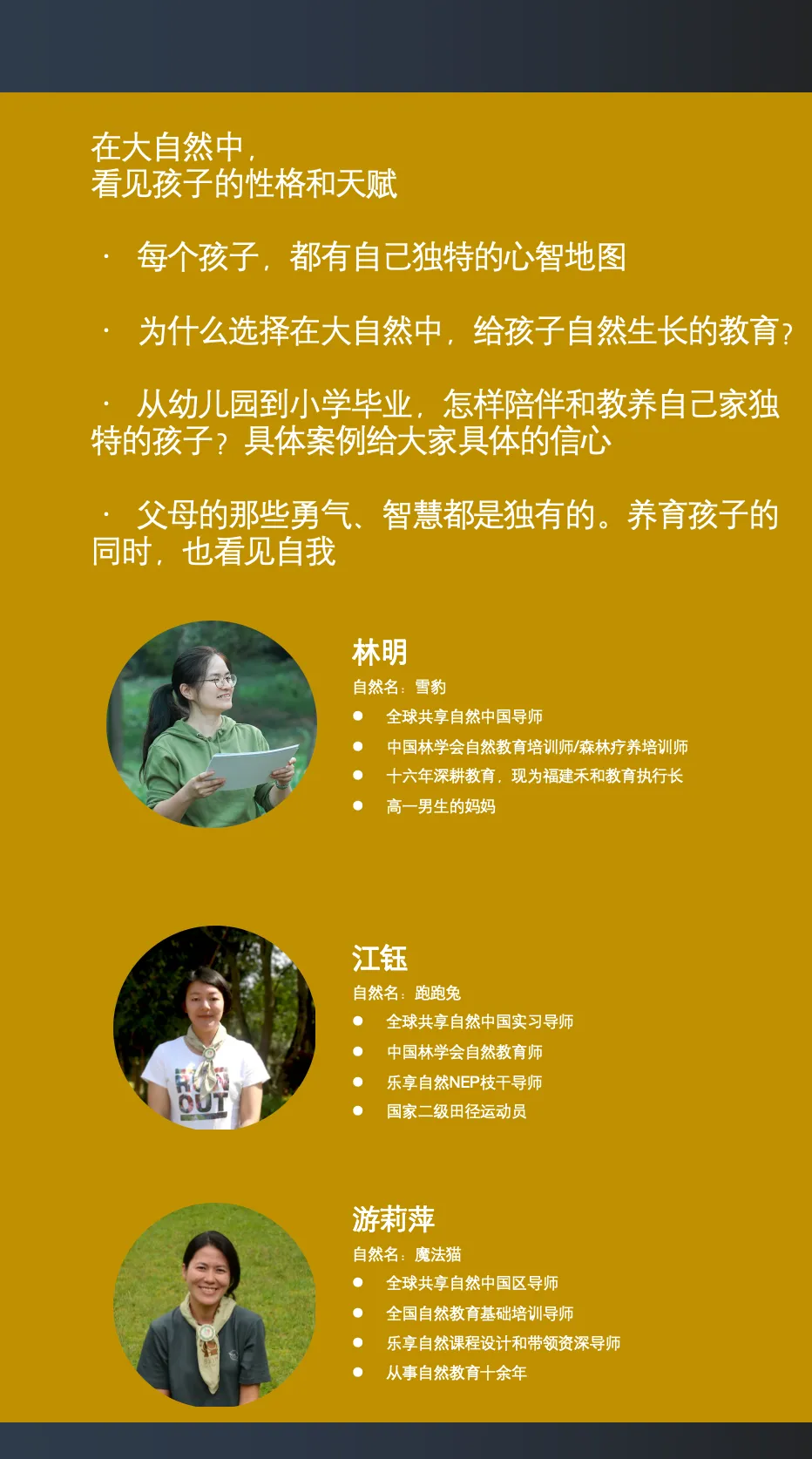 >自然教育讲座资讯:三明,深圳