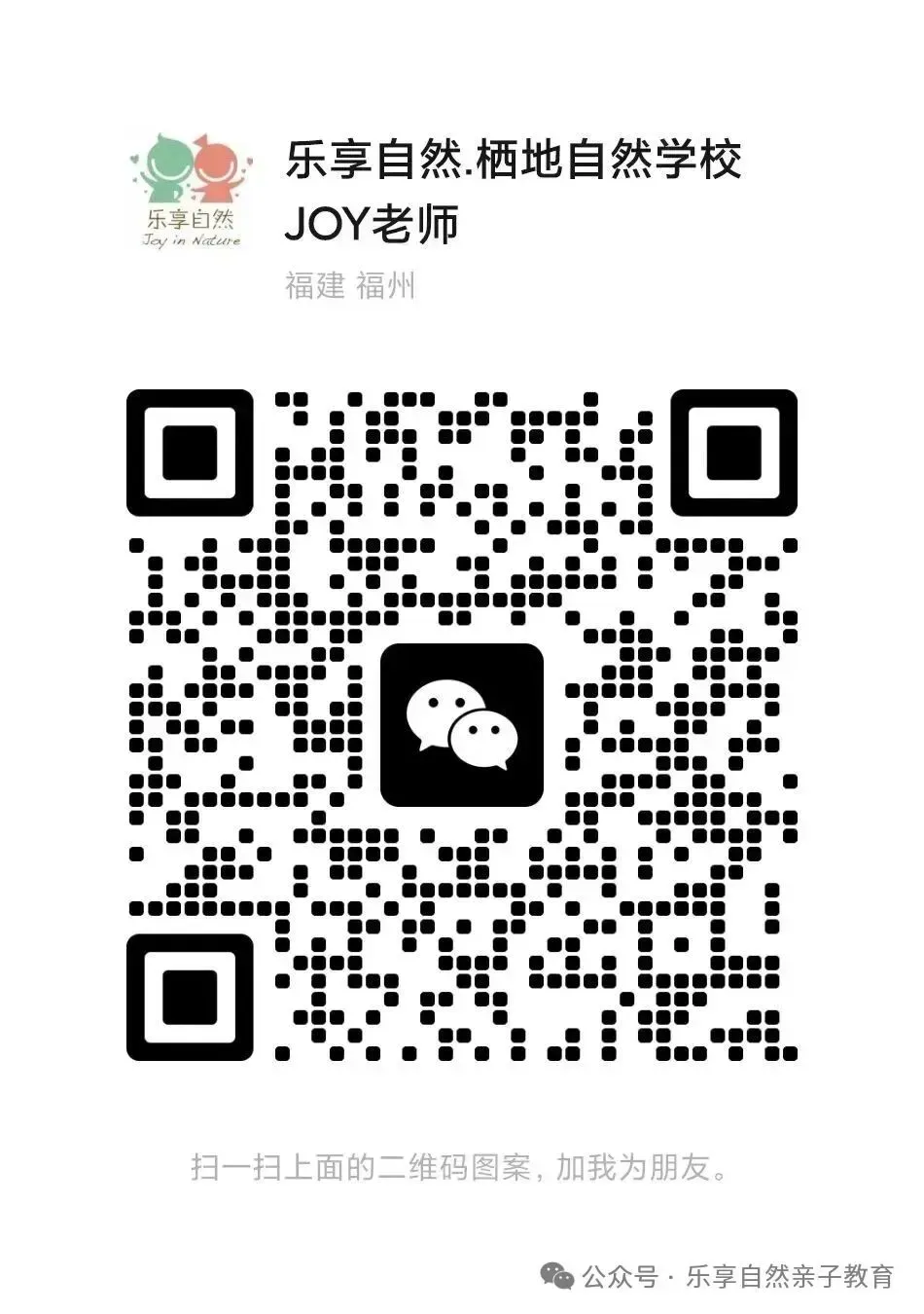 报名方式:扫码JOY老师,咨询详细情况,加入乐享自然三明社群