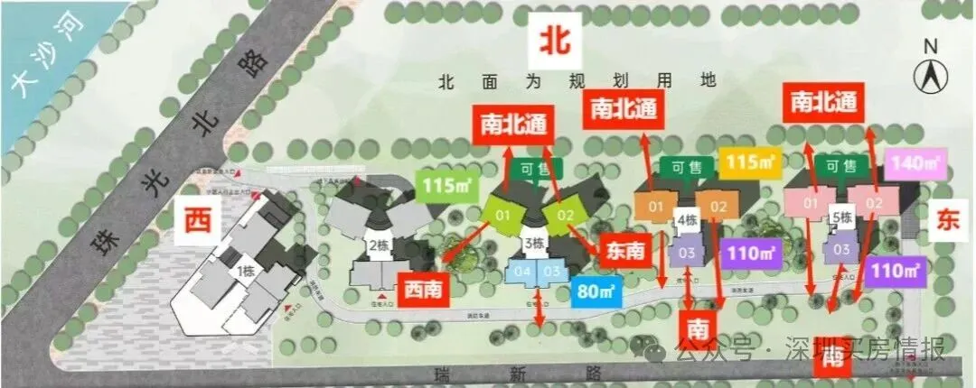 小区总共有5栋楼,目前在售的是3/4/5栋,剩下的1、2栋开发商自持