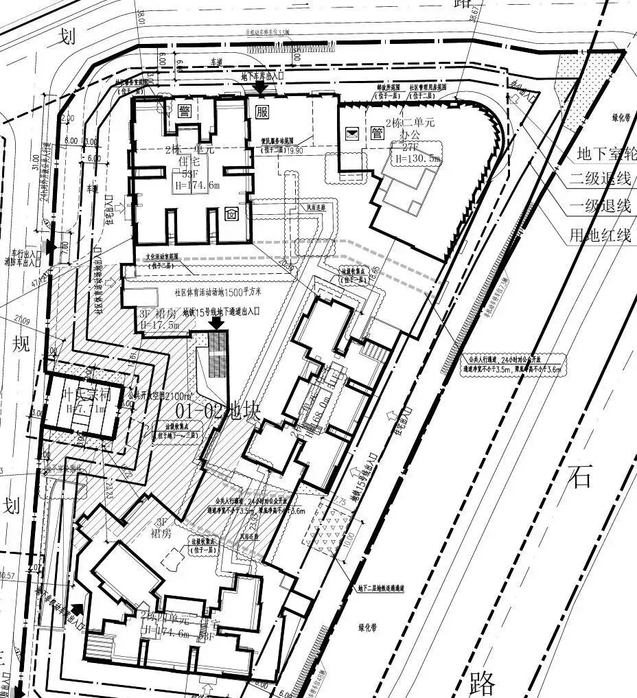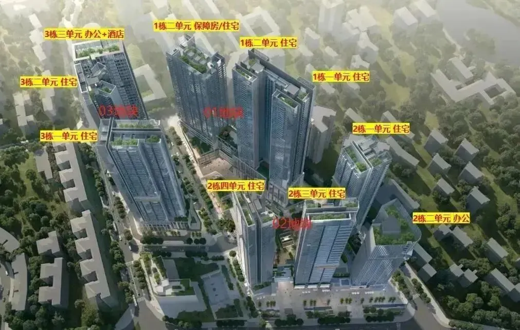规划为3栋超高层塔楼住宅+1栋幼儿园,1栋一、二单元55层,1栋三单元为44层。