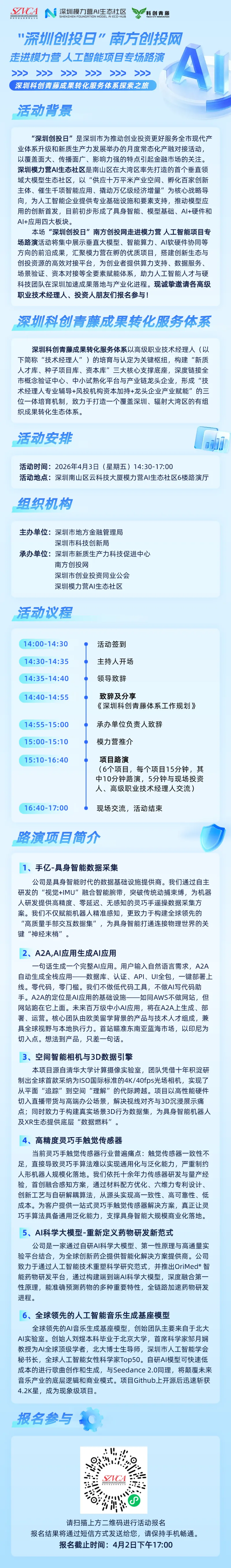 >【活动报名】“深圳创投日”南方创投网走进模力营 人工智能项目专场路演 科创青藤成果转化服务体系探索之旅即将举办!