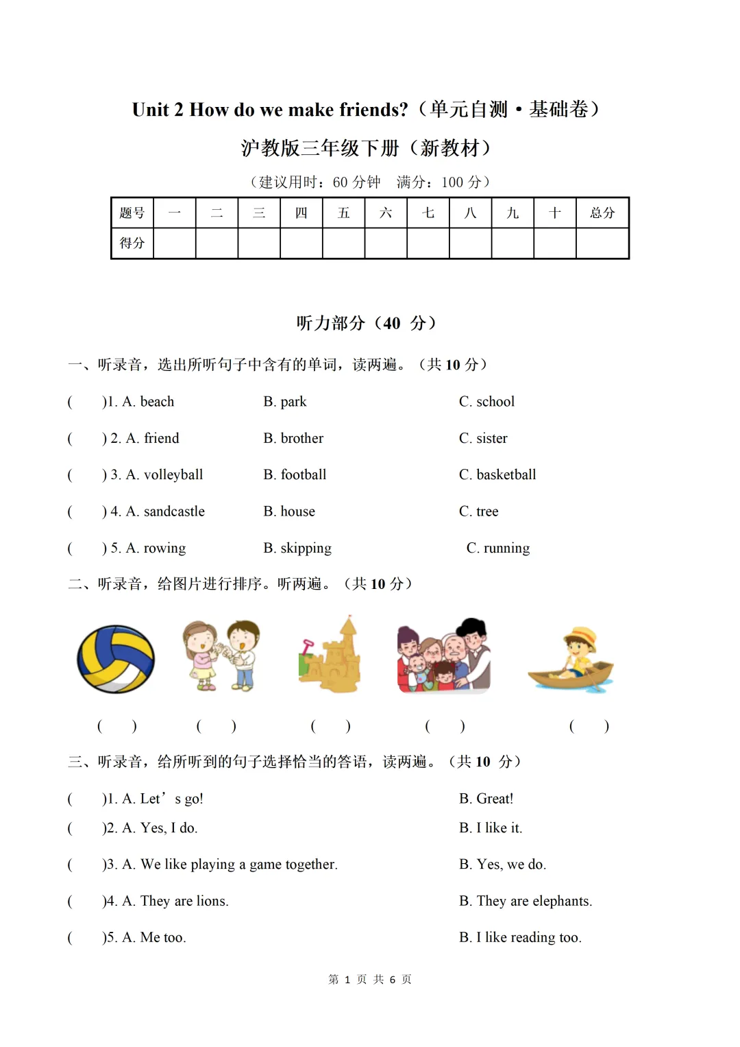 Unit 2 How do we make friends(单元自测·基础卷)