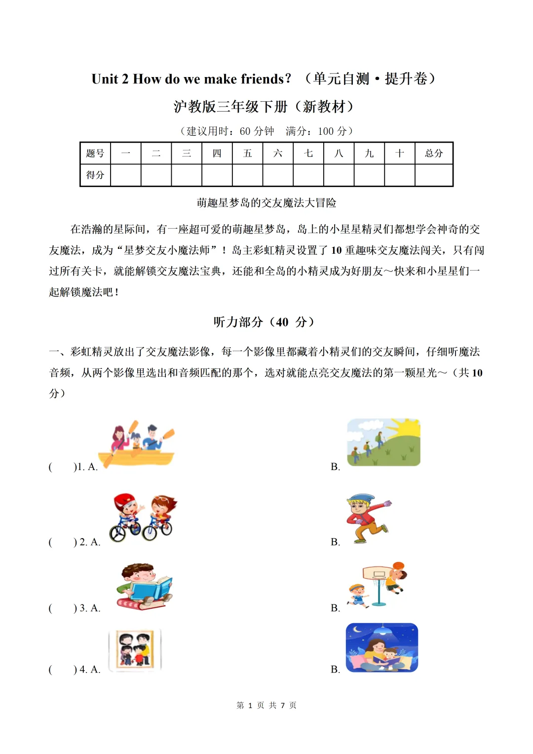 Unit 2 How do we make friends(单元自测·提升卷)