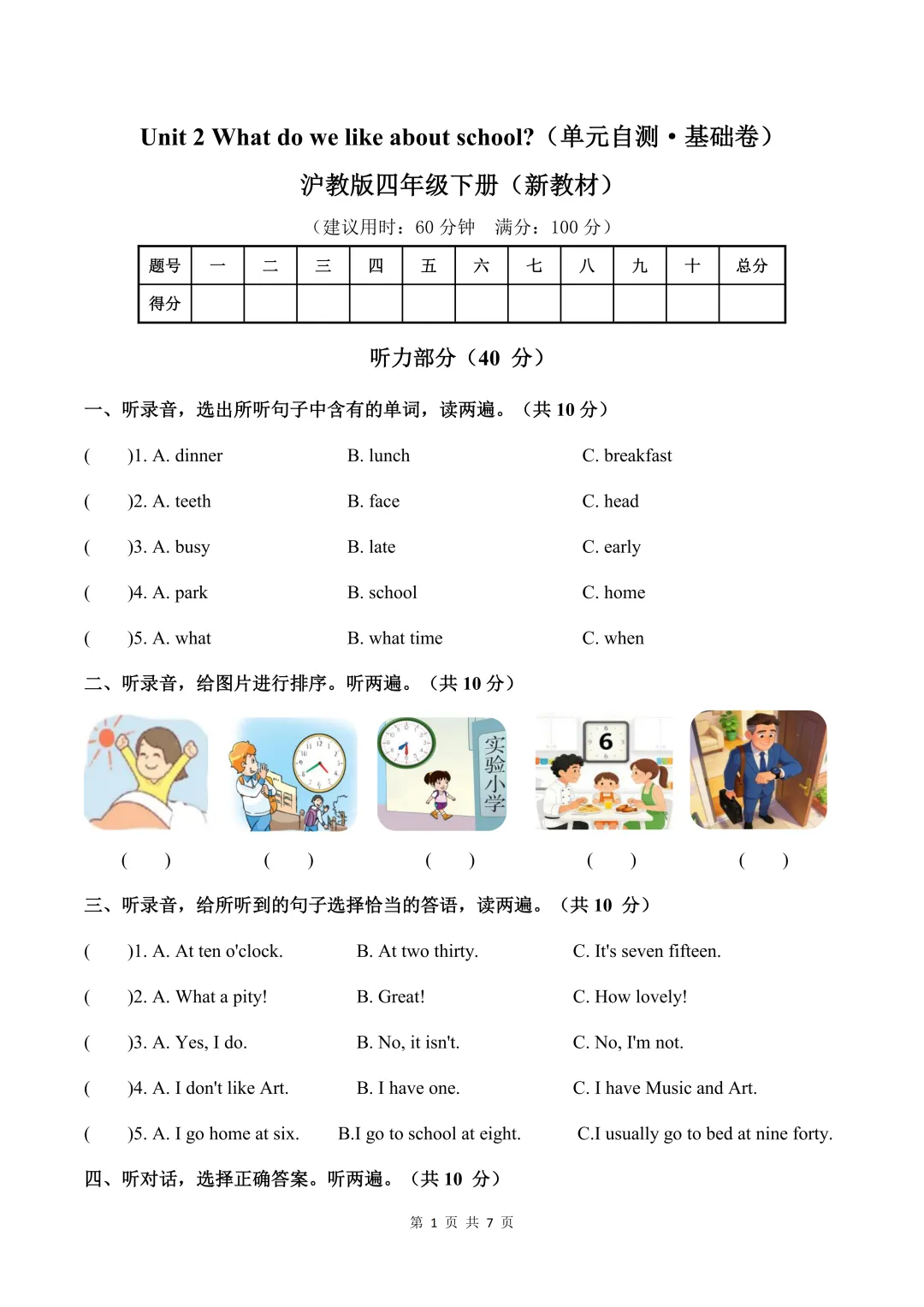 Unit 2 What do we like about school(单元自测·基础卷)