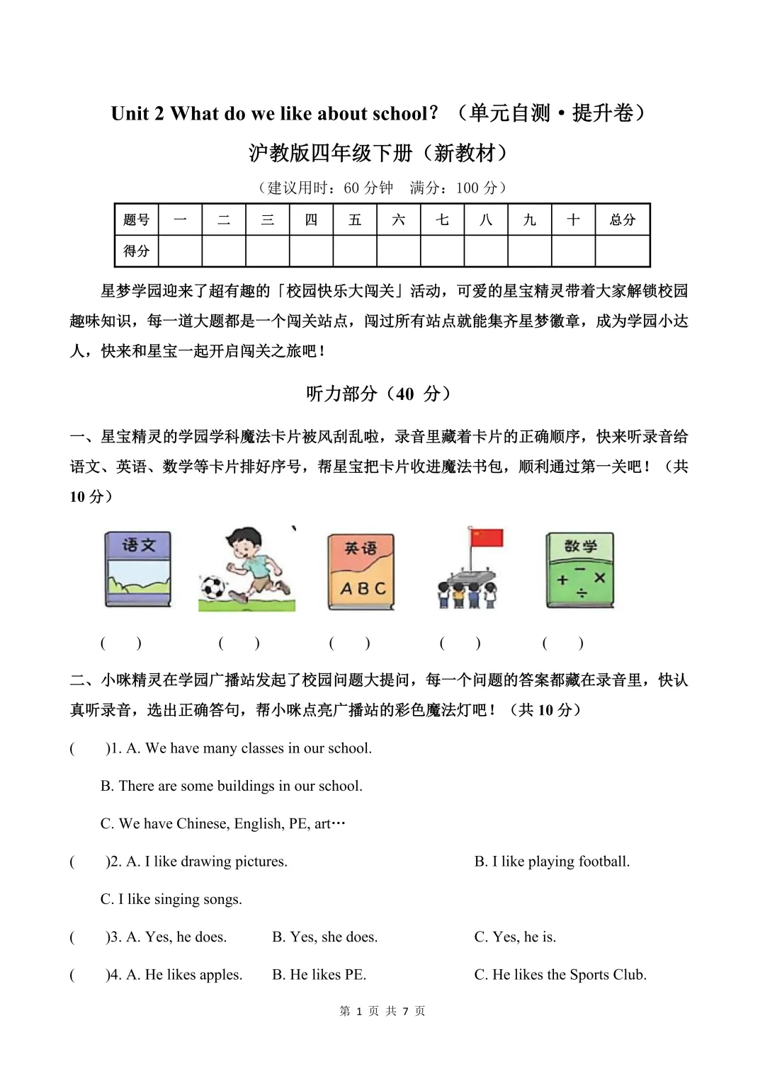 Unit 2 What do we like about school(单元自测·提升卷)