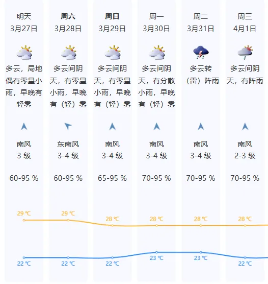 未来几天我市云量较多,偶有零星小雨来报到,请大家不要洗晒大件衣物。早出晚归的小伙伴要注意,不要将衣物放在露天环境下晾晒。