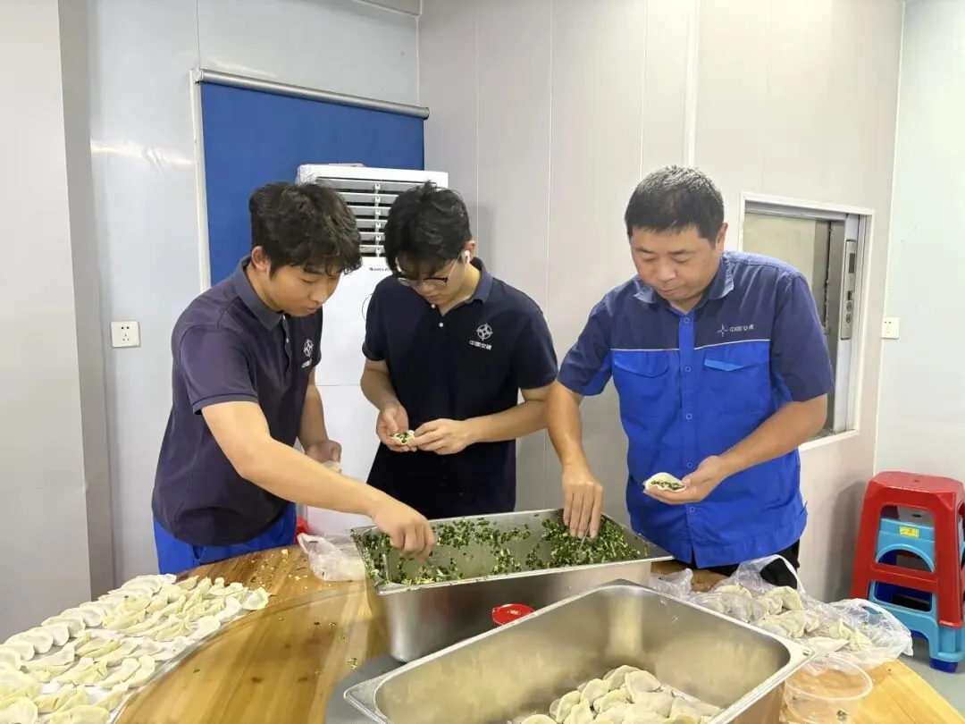 随着一锅锅热气腾腾的饺子新鲜出锅,职工们围坐一处品尝着劳动成果,雨季的凉意与工作的疲惫也随着饺子的香气慢慢散去。