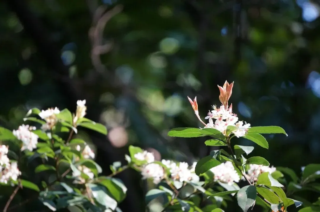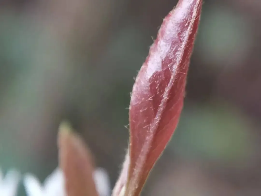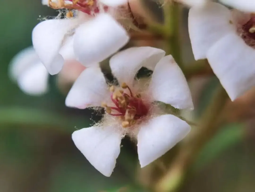 深圳的春天是短暂又急促的,总是匆匆又匆匆。深圳的春天又是热闹非凡的,春花们纷纷登台演出,其中最早上场一定是它——石斑木,故它也叫“春花”,好像它开了,就预示着新一年的春天到了。相比柳叶石斑木,石斑木更为常见,它频繁出现在我的小区、家旁边的绿化带里,山里更是随处可见。它不开花时,就是很平凡的绿植,春天开花时,小小的白花一点也不招摇,却成为我眼里的美花。新开的花,花心处是黄色的(雄蕊的花药是黄色的,花丝是白色的),这代表它够新鲜,吸引传粉昆虫来。开到尾声时,雄蕊的花丝变成红色了,花药里的花粉已经散尽了。以前常常有朋友会误解石斑木有两种花,其实不是,它只是用这种方式在告诉那些传粉昆虫,我已经“人老珠黄”了,请不要光顾我了。花瓣基部有长长的柔毛,不知这些柔毛对它有什么意义?花丝会变色,这一点在另一种乡土植物——木油桐身上也观察到。毛毛的花萼在花开时向后反折,花萼下还有褐色的苞片和小苞片。这些苞片和小苞片并不像植物志描述的那样早落。石斑木“生育”能力不错,结果不少,更可喜的是这些果可食,成为孩子们喜欢的野果,入口是甜甜的,但其实果核很大,所以没有什么吃头。但是由于是野果,所以格外受孩子们的喜欢,毕竟物以稀为贵。春天萌发的新叶是红色的,很娇嫩,也是一道美丽的风景。新长出来的嫩枝也都是毛,也能看到托叶。但老枝的毛和托叶都会褪去。老叶互生,革质,正面深绿色,背面粉绿色,有网状的叶脉。