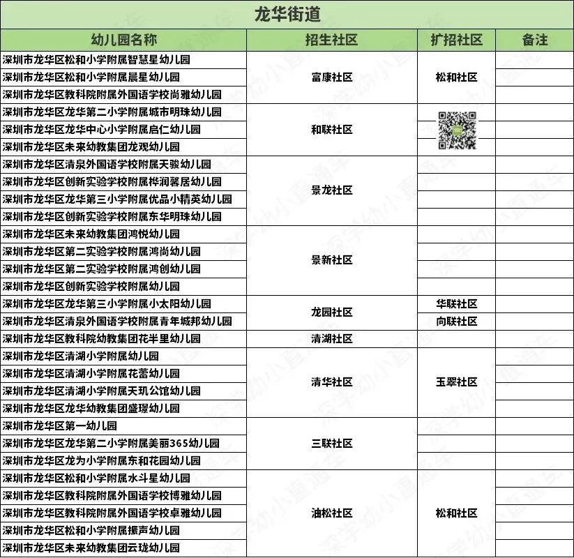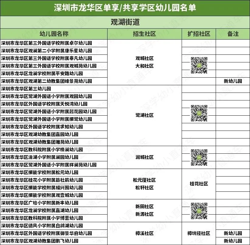 龙华区公办幼儿园设单享学区、共享学区两种招生模式: