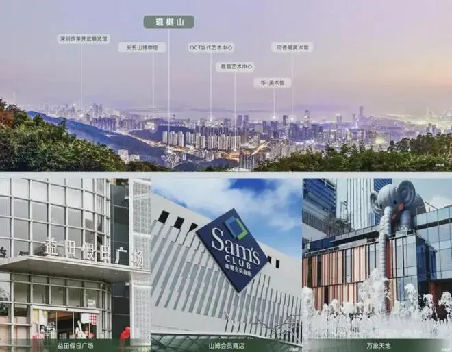 中心区域:深圳山海城中轴,左手香蜜湖、右手华侨城,六大总部基地环伺