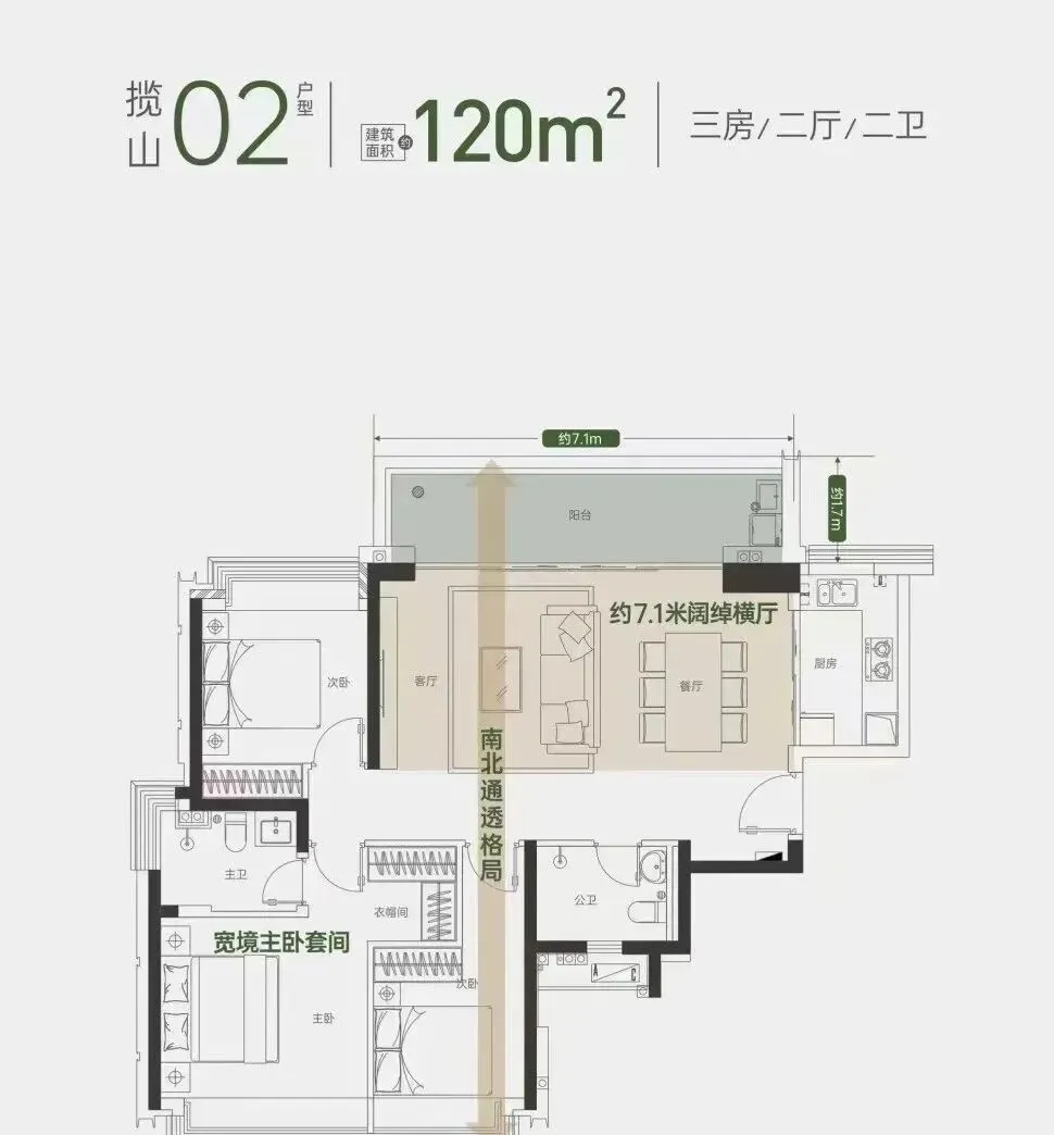- 户型设计合理:主力户型为120-268㎡的大户型,得房率较高(80%-90%)。120㎡做到3房,大户型层高达3.6米,空间开阔且动静分区明确。