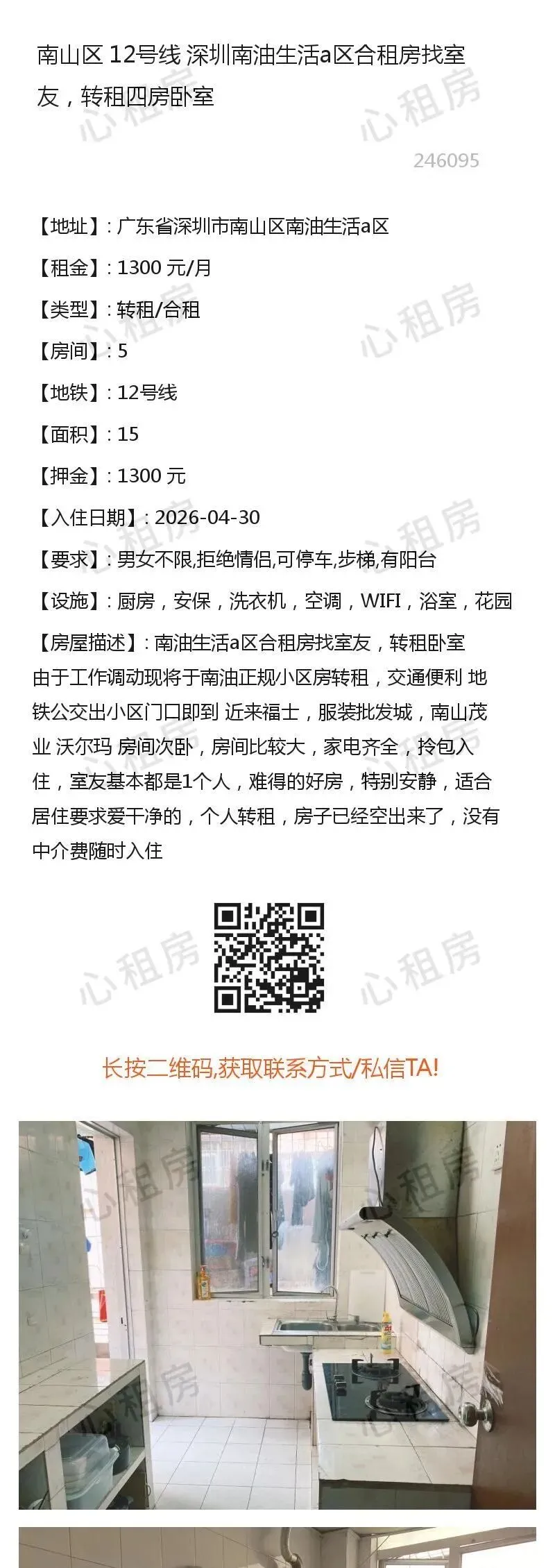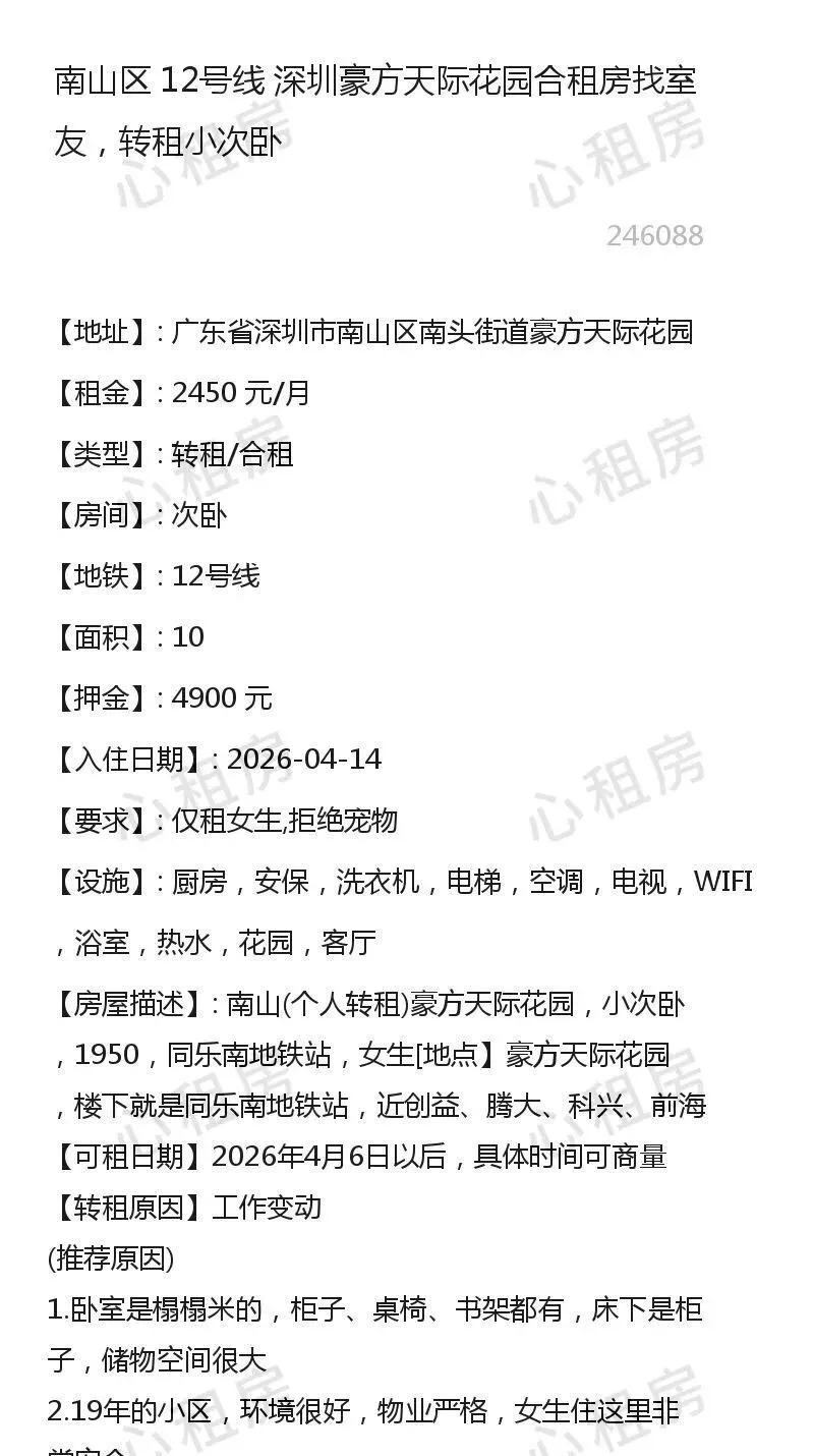 深圳租房黑房东找房子罗湖合找室友合租短租深租房科技园深大豆瓣南山租房地铁租房龙华新福田罗湖光明新区坪山新区大鹏南山豆瓣1、所有房源信息均由网友投稿,委托本公众号/心租房(homhere.cn)发布,房源的真实性、合法性由提供者负责。2、请务必核实双方身份信息(身份证)、房产权属(产权证明)、转租权利(租赁合同)等基本信息。3、请务必实地考察房源并确保与出租方提供的基本信息一致。4、切勿轻易支付定金、保证金、打赏等,建议签订《租赁合同》后再进行交易。5、双方在房屋租赁过程中产生的一切纠纷,均与本公众号/心租房(homhere.cn)无关。6、近期欺诈团伙在境外以相亲交友、租房、国际包裹等名义实施杀猪盘、诱导下载未知app等进行刷单返利等欺诈的行为较多,请先确认对方身份,保护个人隐私和财产安全。