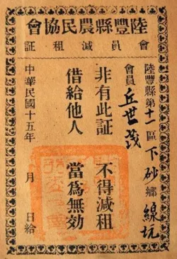2.下图是中华民国十五年广东陆丰县农民协会减租证。该史料可用于研究( )