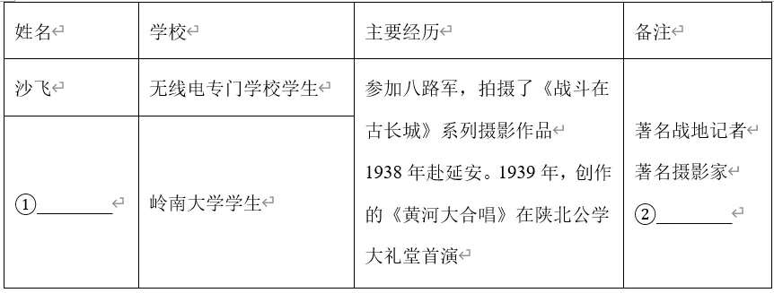 表中①②处分别是( )