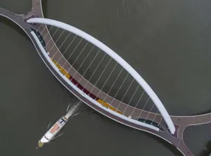 2021年6月,广州海心桥落成。海心桥由国内团队设计并负责施工,为世界同类型桥梁中跨度最大、宽度最宽的过江人行桥。大桥修建采用了一系列新技术、新材料,克服了抗风抗震等诸多难题。海心桥造型概念源于“琴鸣绢舞·岭南花舟”,吸取了粤曲水袖等岭南文化元素。