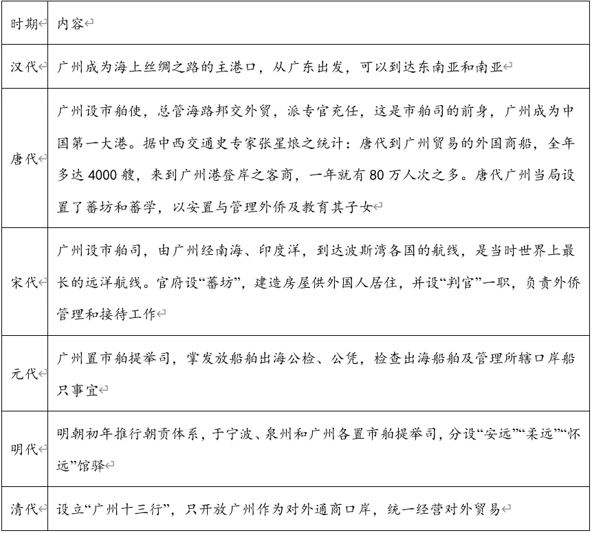 材料一 古代广州海上贸易发展简史(部分)