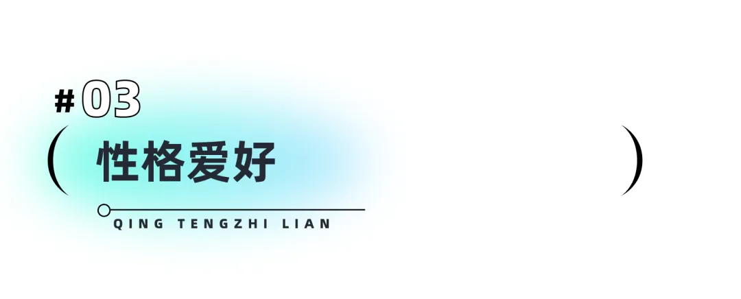 从小学古筝十级优秀,大学街舞队成员至今仍在跳新舞种;热爱户外徒步(2km内喜欢步行)、旅行(寒暑假必出游,国内外多地)、运动(跳舞、徒步、爬山、瑜伽、普拉提等),喜欢打卡美食。