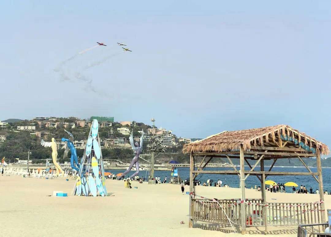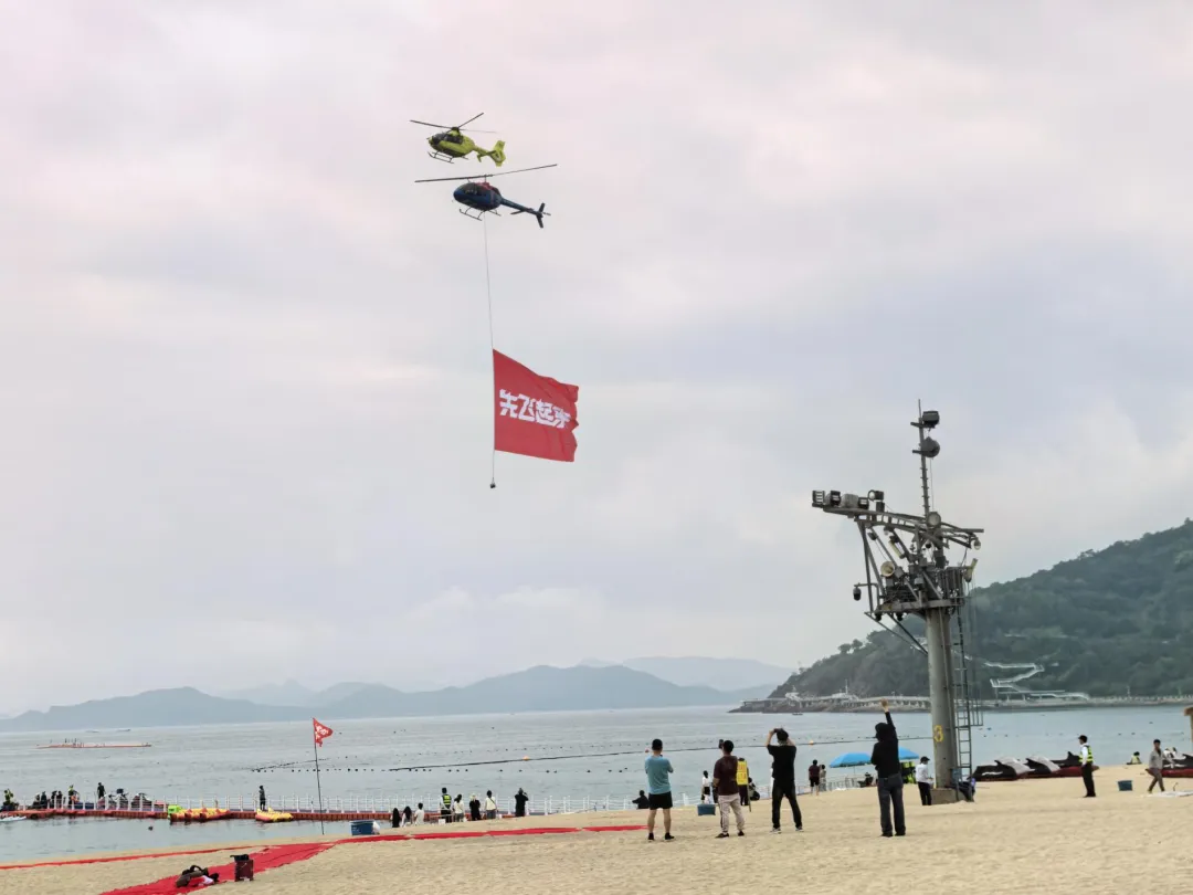 随着多种低空飞行器飞越大梅沙海滨公园沙滩上空,沿海岸线低空掠过,整场飞行展示将活动氛围推向高潮。