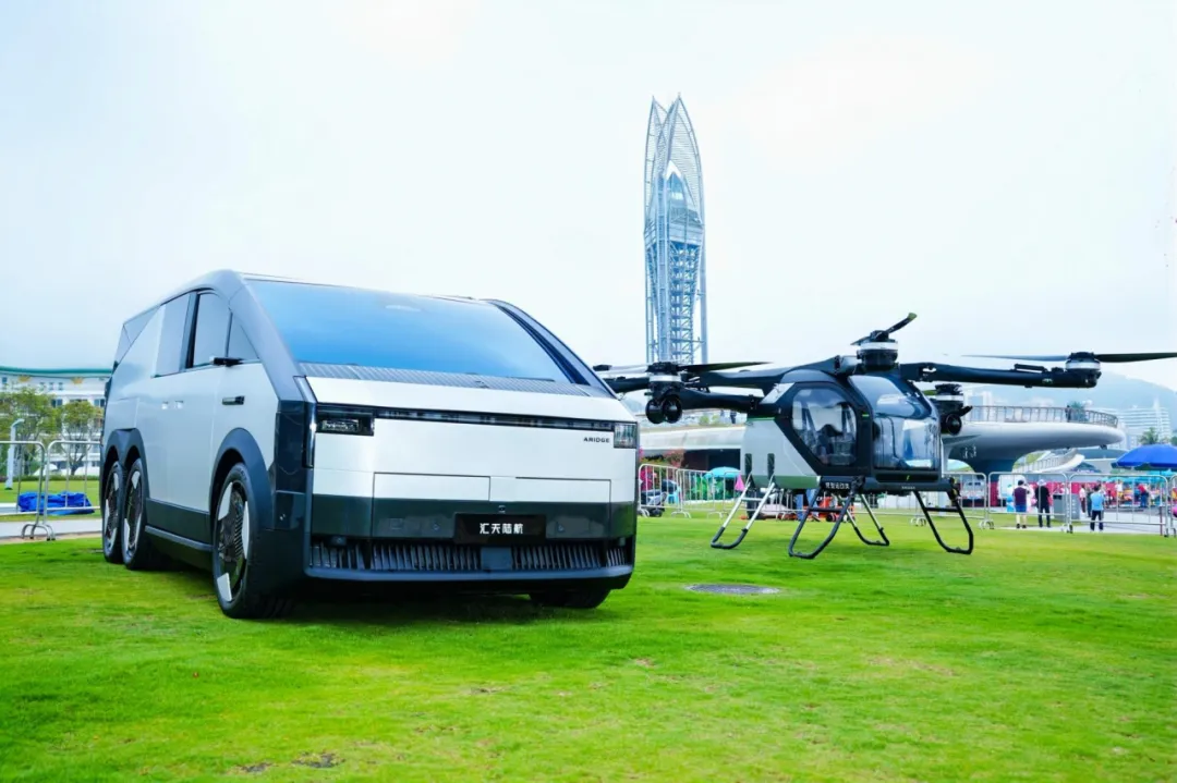 eVTOL梯队随后亮相。反重力和英武智能的空中飞车依次在直升机平台精准起降,机体轻盈、姿态平稳、噪音更低,充分展现出新型低空飞行器的良好性能和未来应用前景。