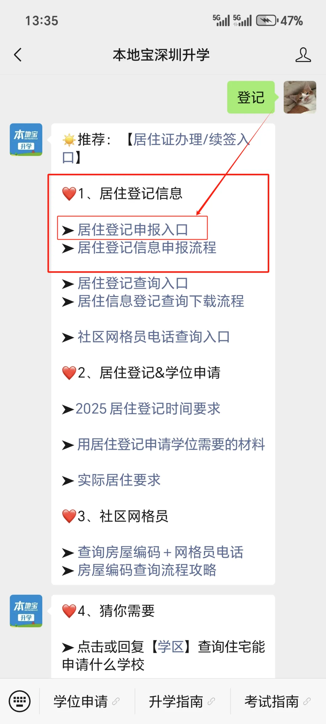 在深圳公安公众号,或者长按下方二维码,进入【本地宝深圳升学】回复【登记】点击“居住登记申报入口”