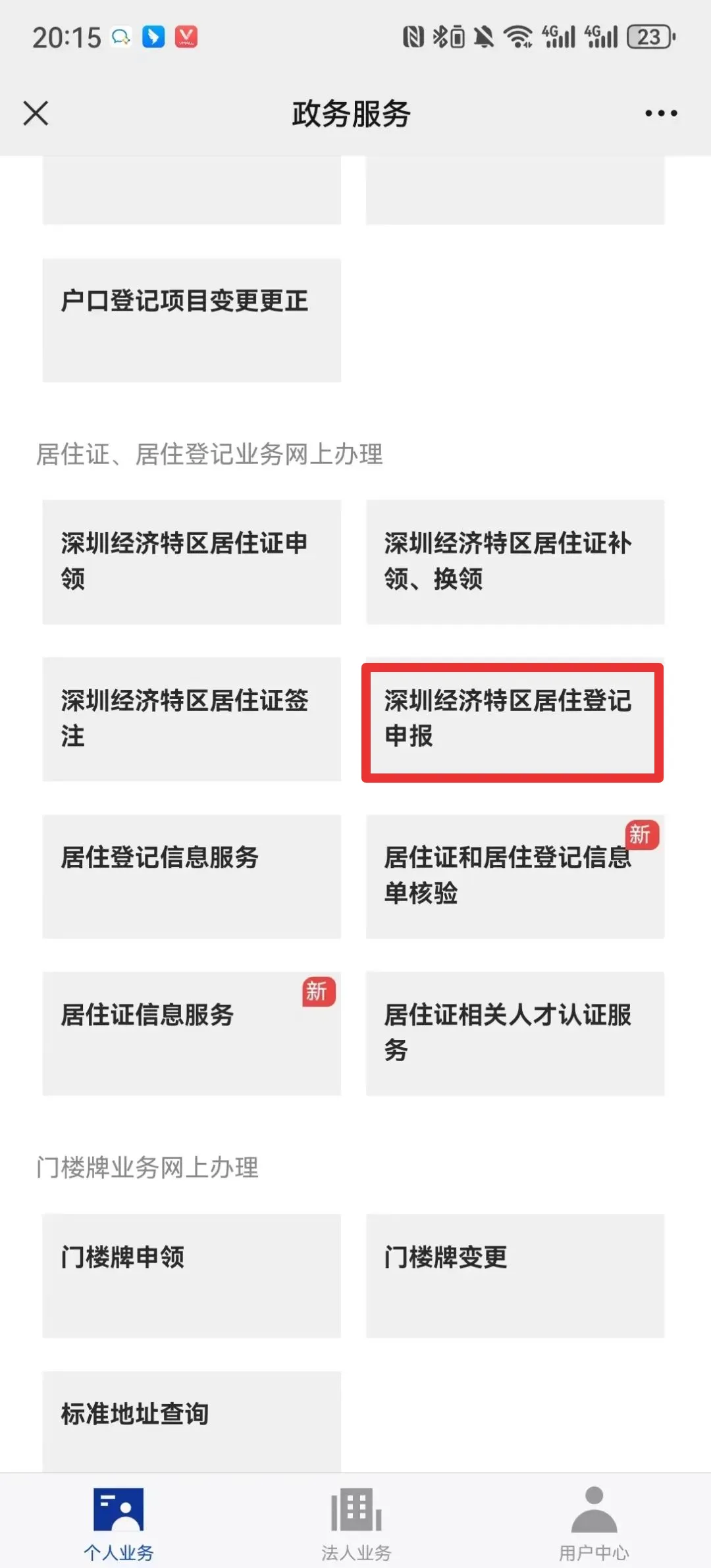 第一步:进入入口后,往下拉找到“深圳经济特区居住登记申报”并点击