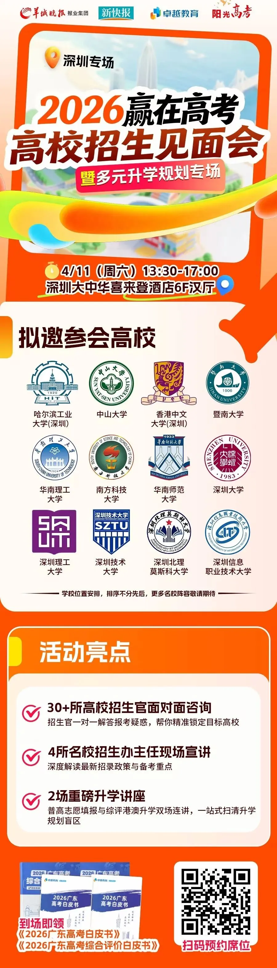 30+所高校出席!深圳专场【2026赢在高考高校招生会】约定你!