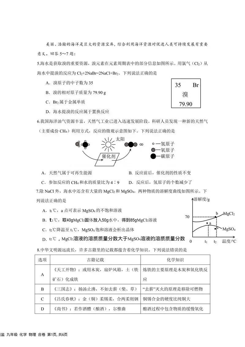 初三 | 化学 | 模考卷 | 下学期 | 深圳市南山区育才集团