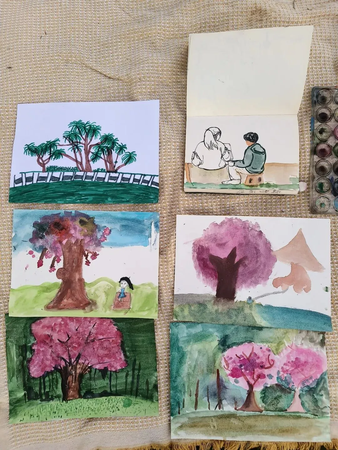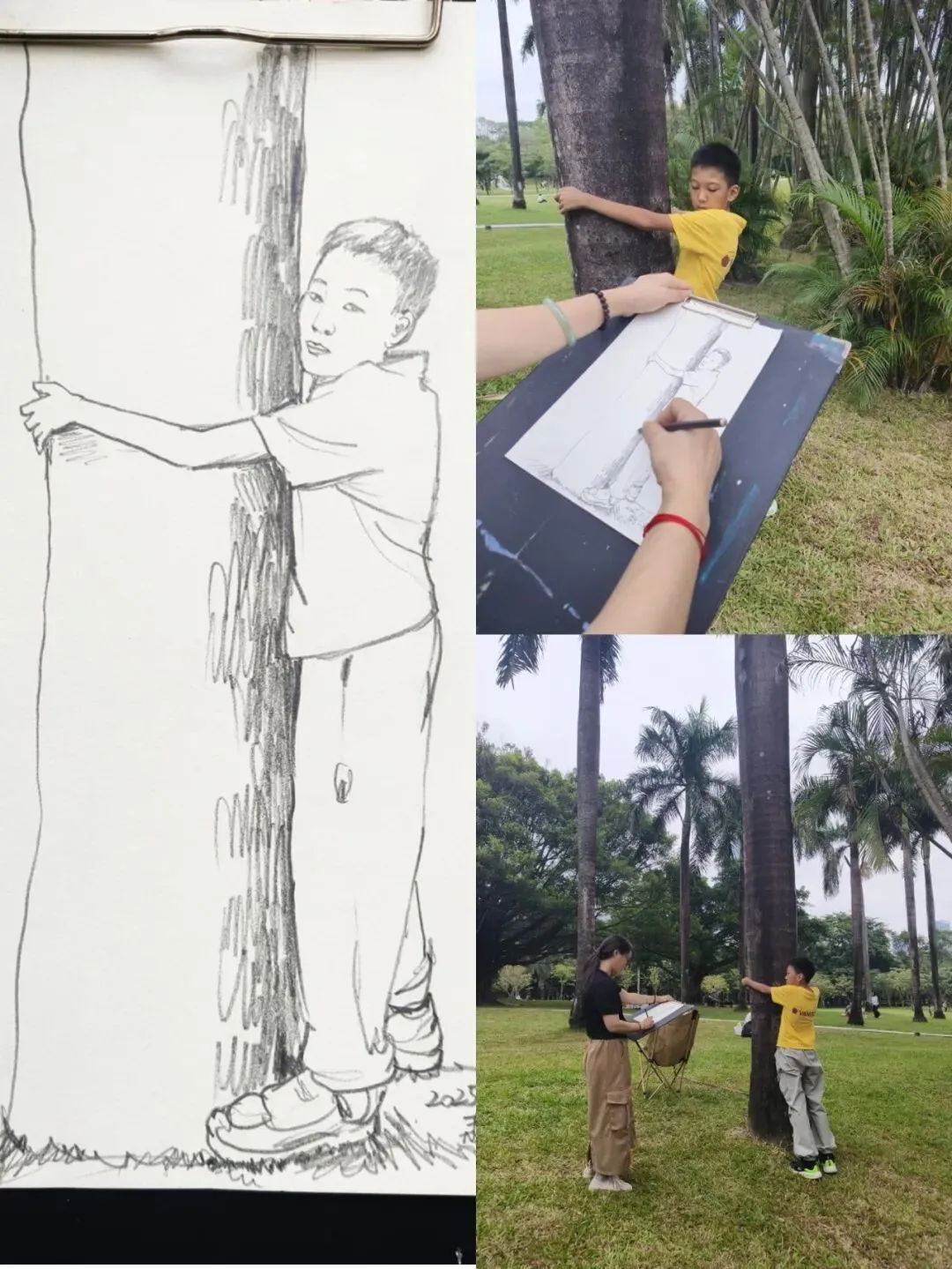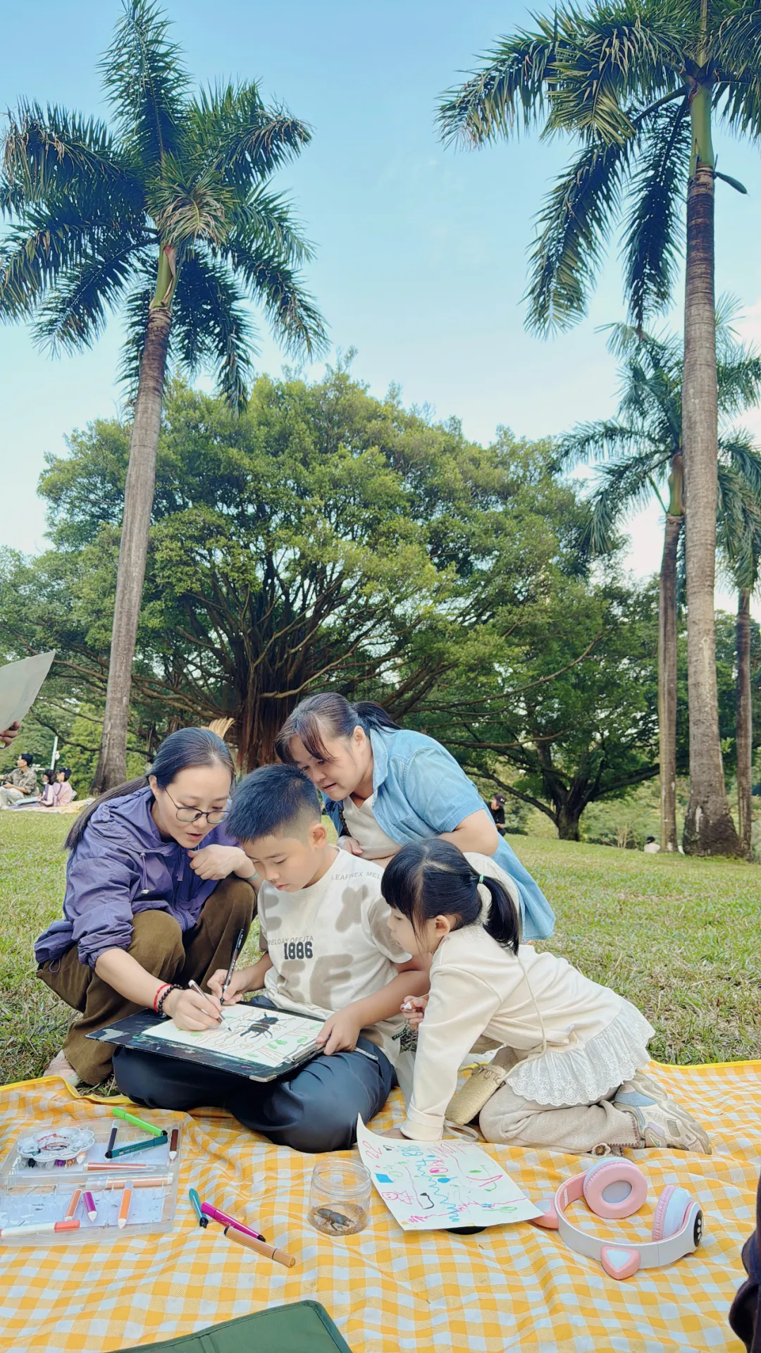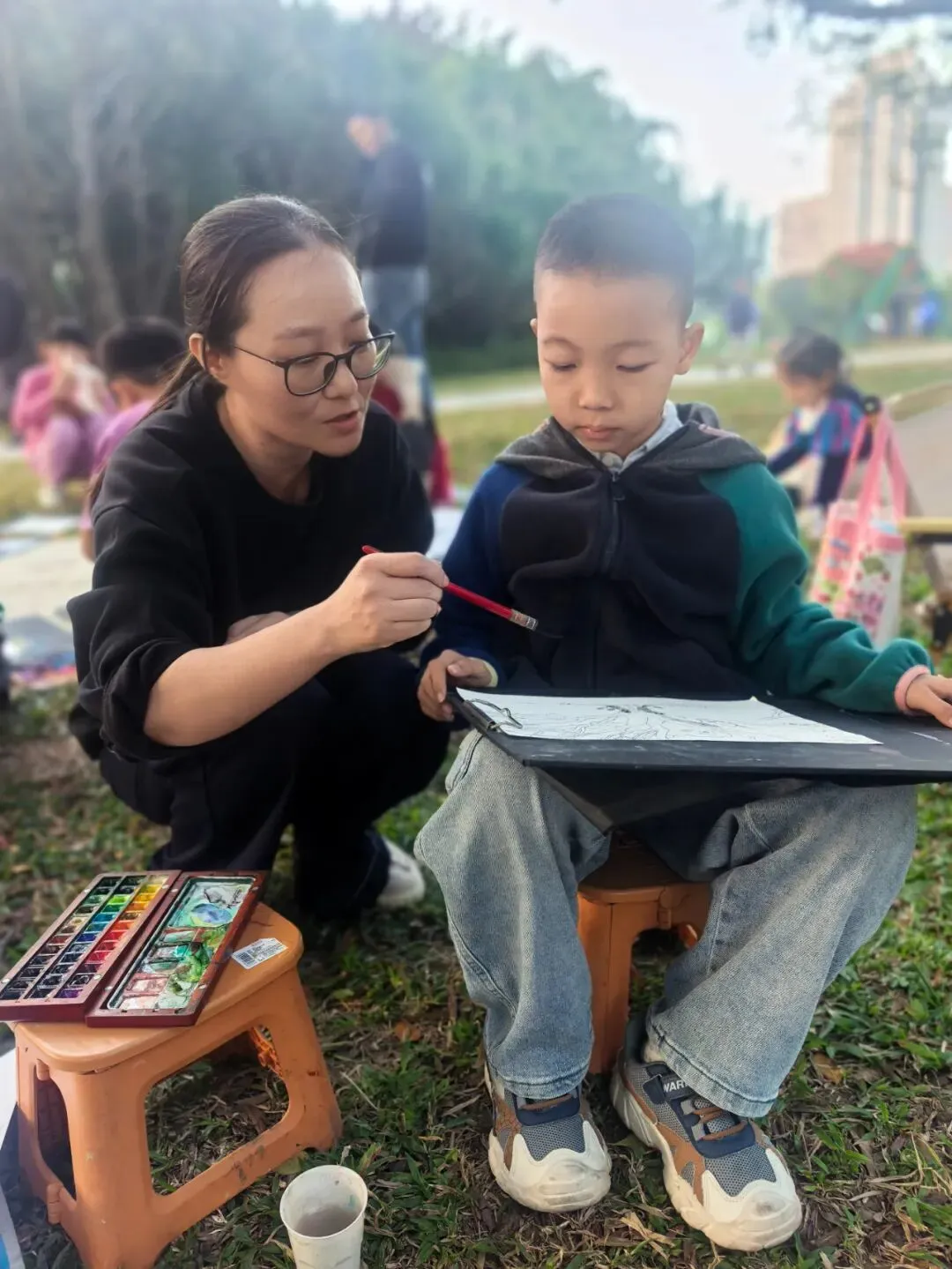 去年,我干了一件更“傻”的事:每个周末,免费带孩子们去深圳各大公园写生。贴钱、贴画材、贴时间,累得够呛,但看到那些平时坐不住的孩子,对着树叶上的光影安安静静画了半小时,我觉得值了。