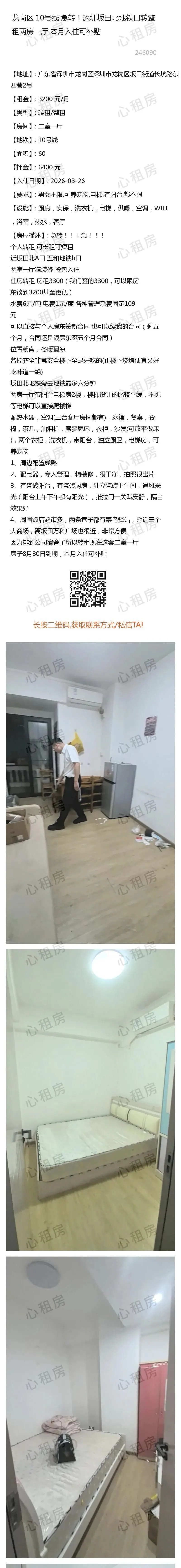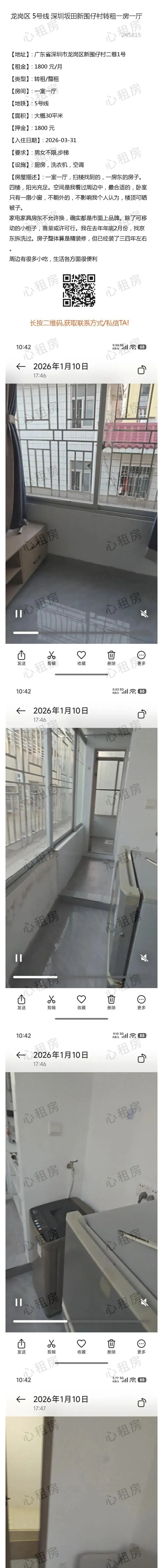 深圳租房【龙岗4则】房源①:10号线深圳龙岗转租单房短租2050元/月;房源②:…