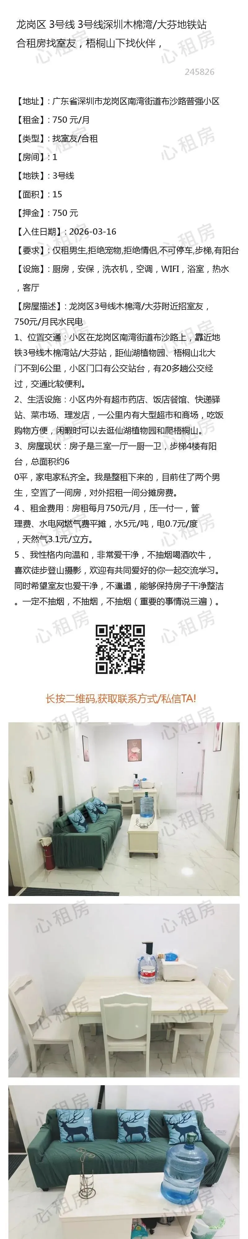 深圳租房黑房东找房子罗湖合找室友合租短租深租房科技园深大豆瓣南山租房地铁租房龙华新福田罗湖光明新区坪山新区大鹏南山豆瓣1、所有房源信息均由网友投稿,委托本公众号/心租房(homhere.cn)发布,房源的真实性、合法性由提供者负责。2、请务必核实双方身份信息(身份证)、房产权属(产权证明)、转租权利(租赁合同)等基本信息。3、请务必实地考察房源并确保与出租方提供的基本信息一致。4、切勿轻易支付定金、保证金、打赏等,建议签订《租赁合同》后再进行交易。5、双方在房屋租赁过程中产生的一切纠纷,均与本公众号/心租房(homhere.cn)无关。6、近期欺诈团伙在境外以相亲交友、租房、国际包裹等名义实施杀猪盘、诱导下载未知app等进行刷单返利等欺诈的行为较多,请先确认对方身份,保护个人隐私和财产安全。