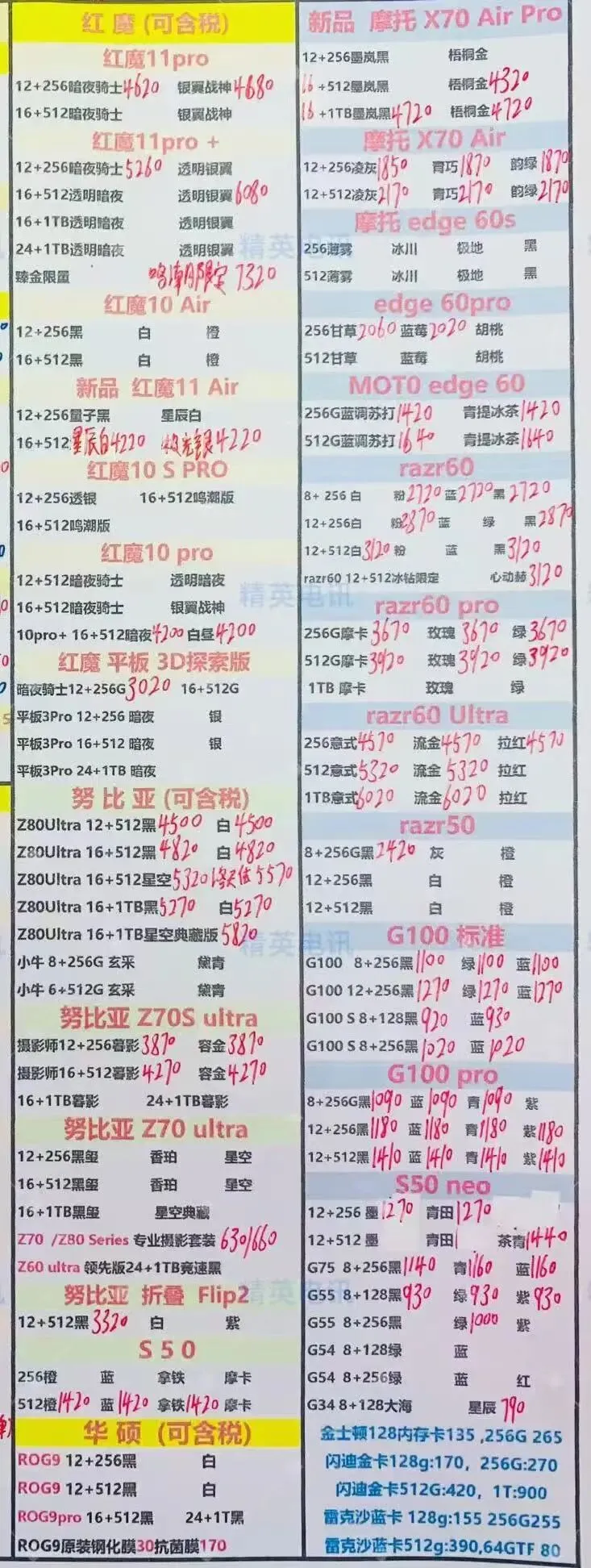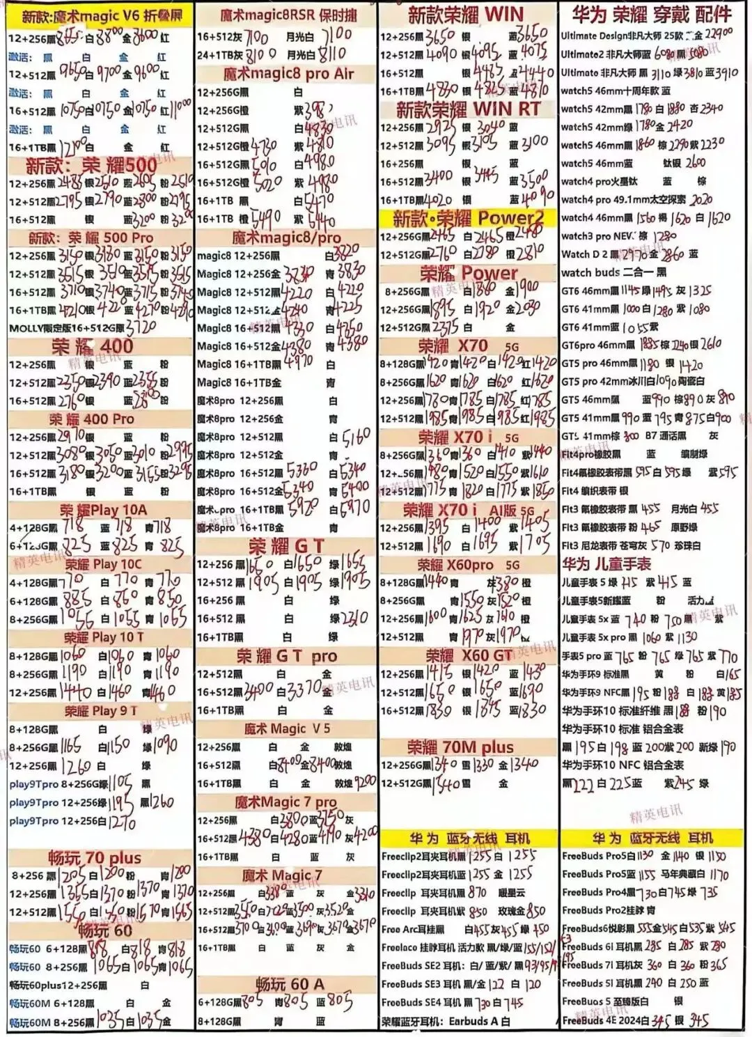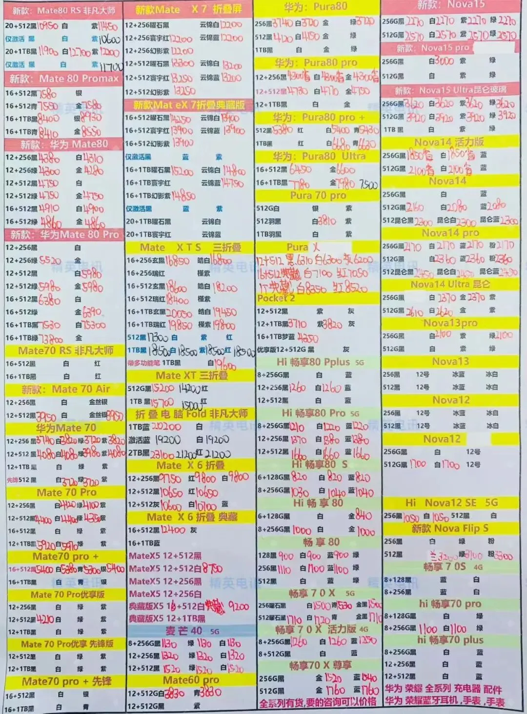 最新全新原封国行华为荣耀小米一加红魔等手机批发报价