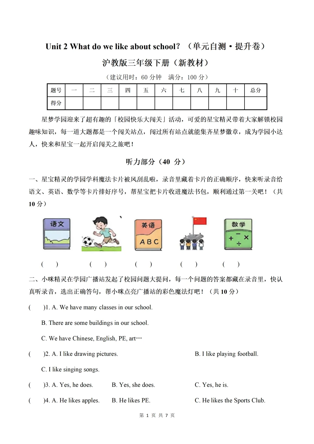 Unit 2 What do we like about school(单元自测·提升卷)