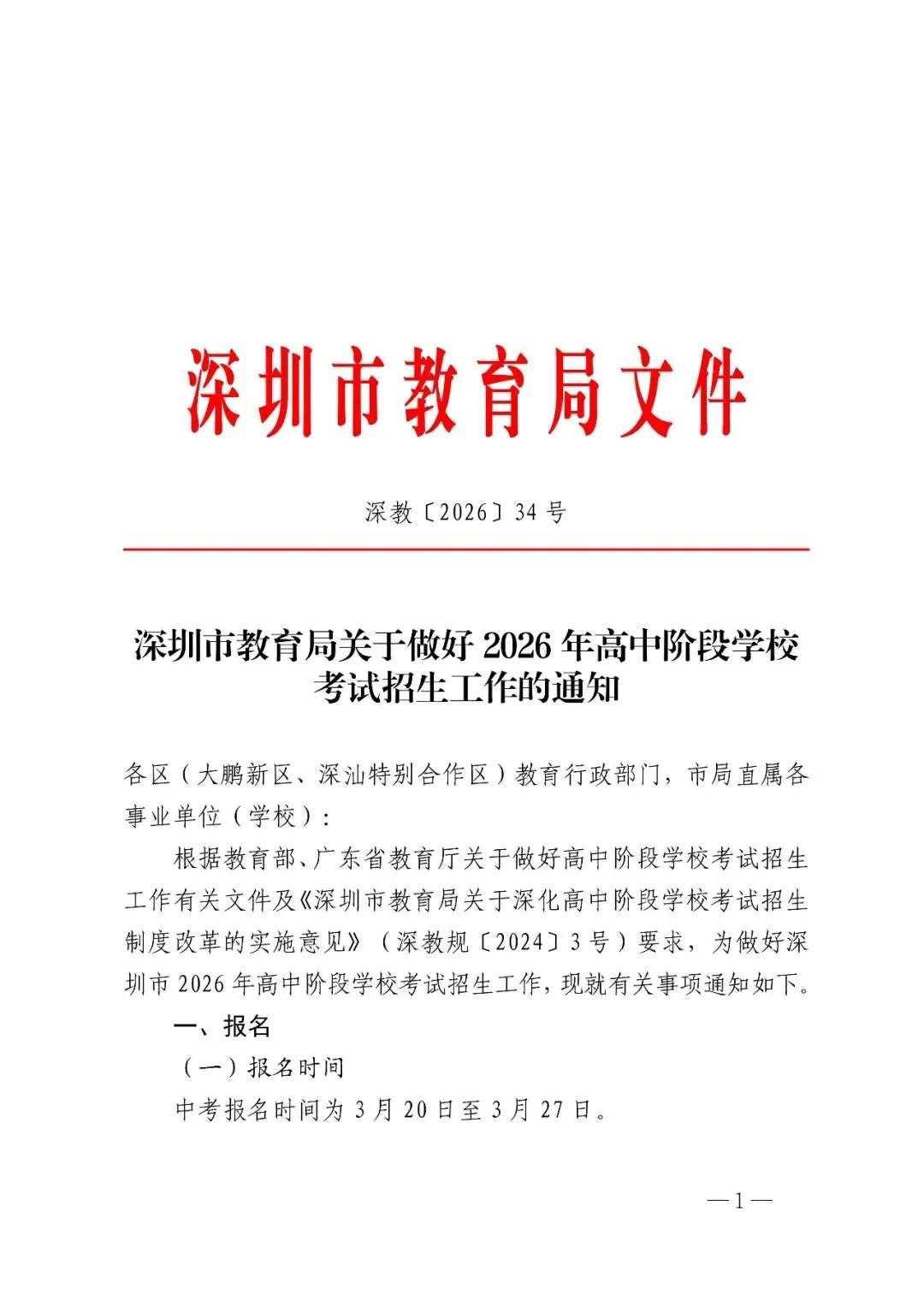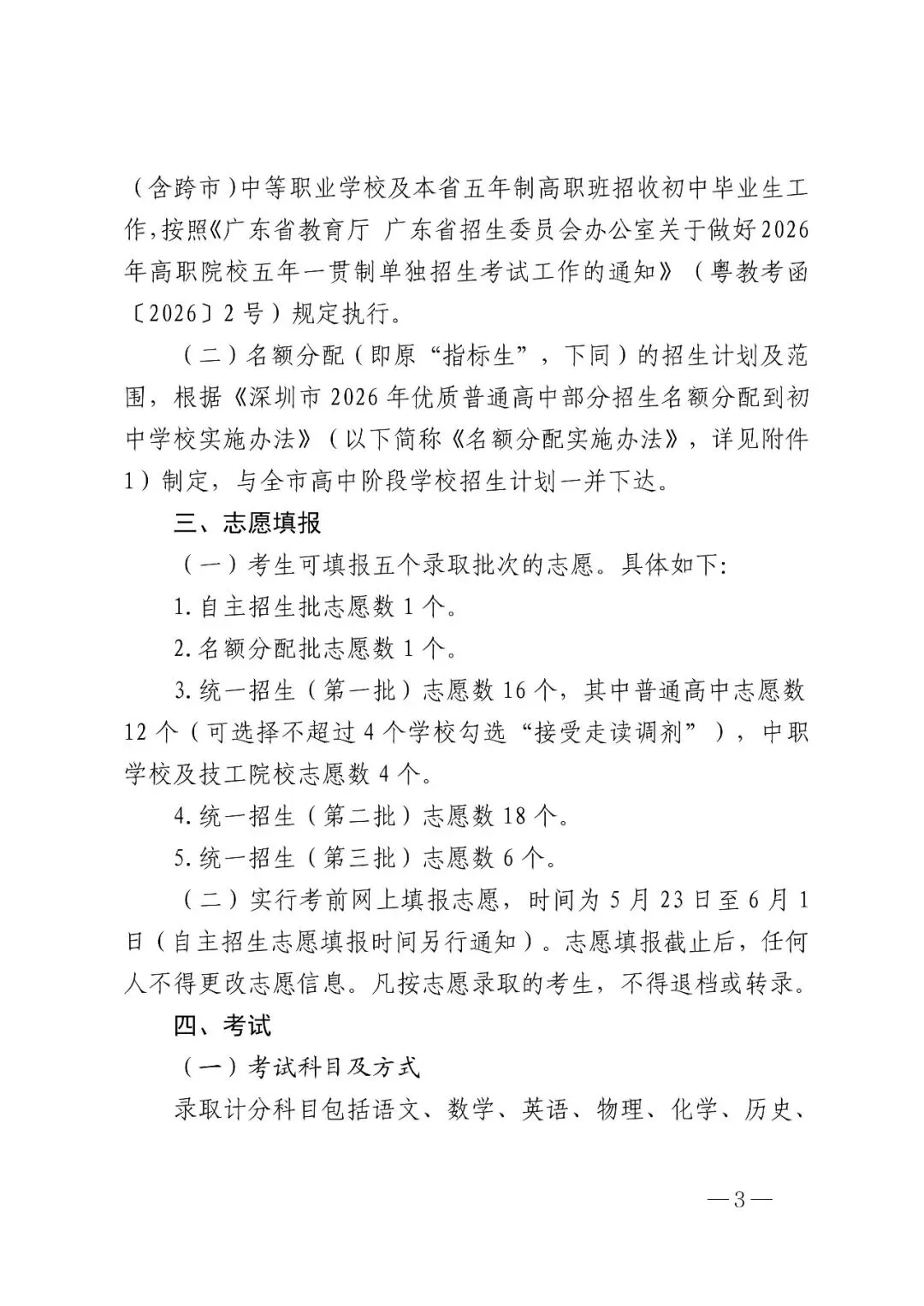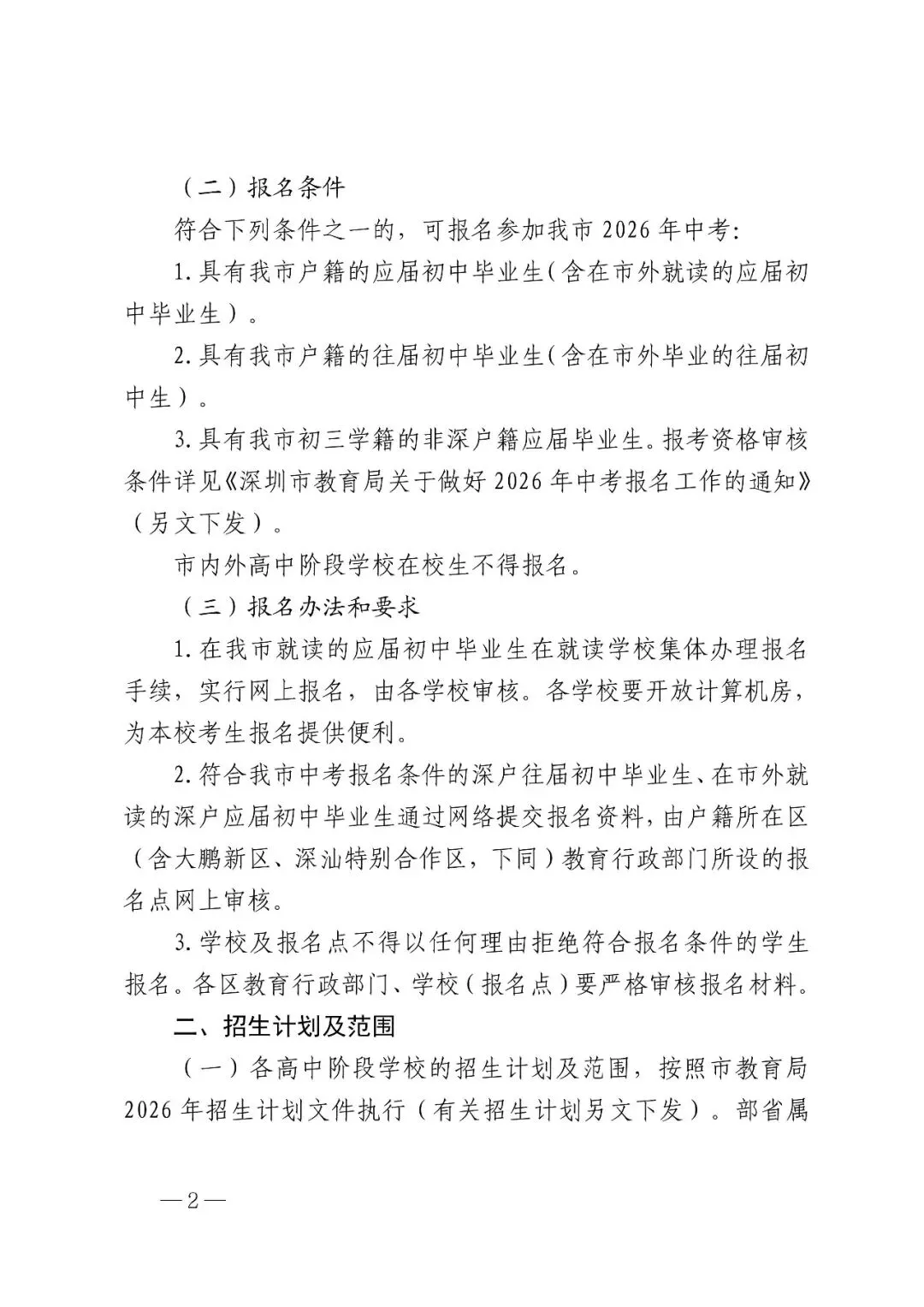 >2026年深圳中考生及家长清查看!!2026年高中阶段学校考生招生工作的通知