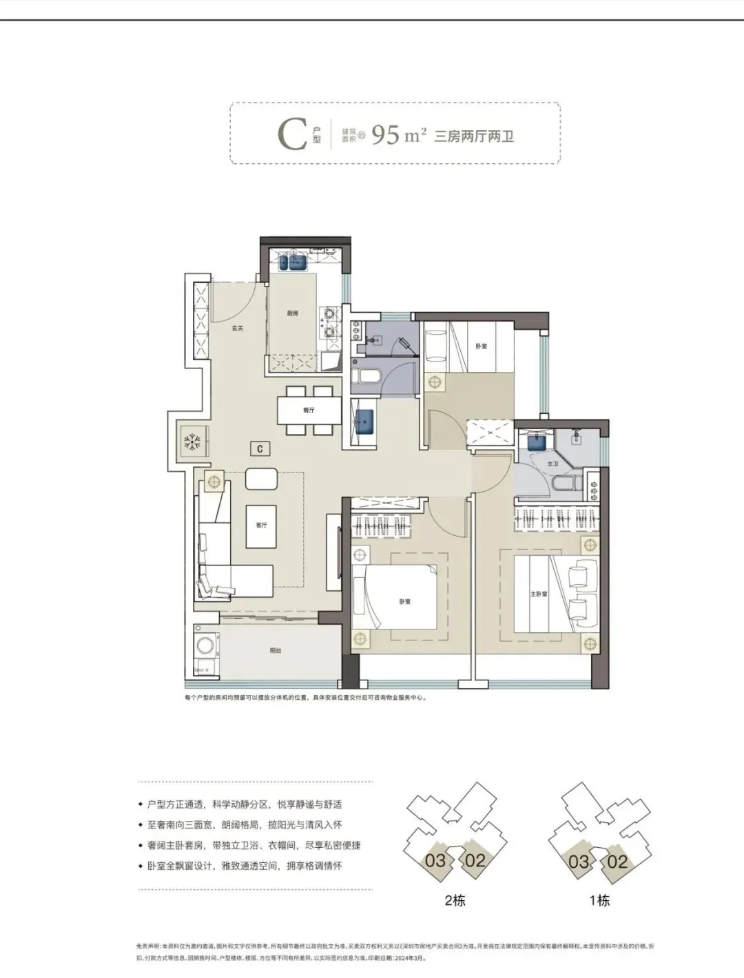 ✅指标:容积率 3.2,2 梯 6 户,毛坯现楼物业费:6.8 元 /㎡/ 月【货量信息】95㎡舒适大三房:约 79 套120㎡奢阔大四房:46 套【核心优势】
