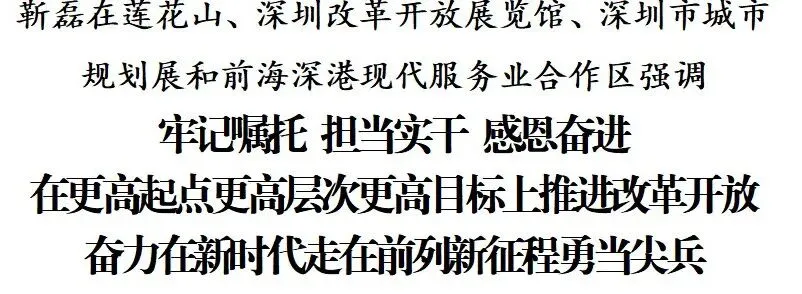 从莲花山到前海,从历史到未来,靳磊履新后的首次调研,既是履新之后的“必修课”,更是面向全市发出的动员令。在“十五五”开局之年,在深圳经济特区建立45周年的重要节点,这座城市正以崭新的姿态,在更高起点、更高层次、更高目标上推进改革开放,奋力在新时代走在前列、新征程勇当尖兵。