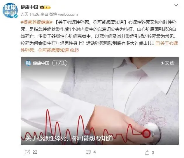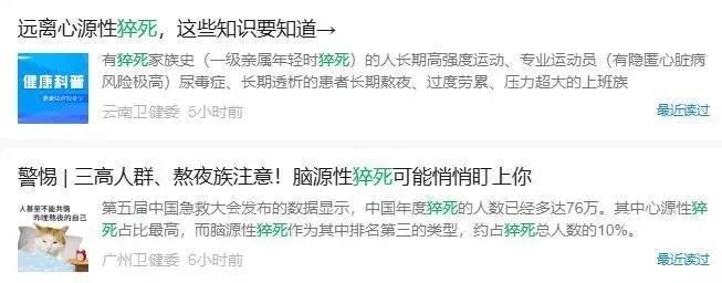 极目新闻记者搜索发现,除国家卫健委外,深圳、广州、郑州、大连、洛阳、济南等地的卫健委都纷纷于近日在公众号上发文,普及心源性疾病的预防和急救知识。