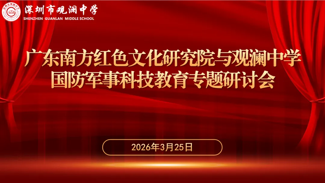 此次研讨会主题鲜明、研讨深入,兼具学术高度与实践导向,为观澜中学国防军事科技教育特色班的发展注入了新的文化动能,为基础教育阶段拔尖创新人才培育注入了丰厚的红色动力。