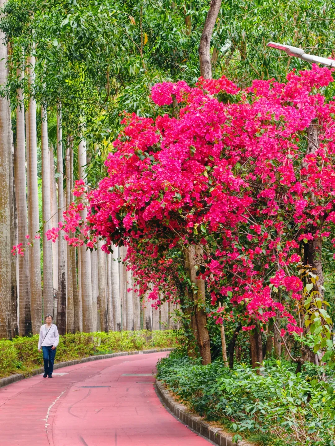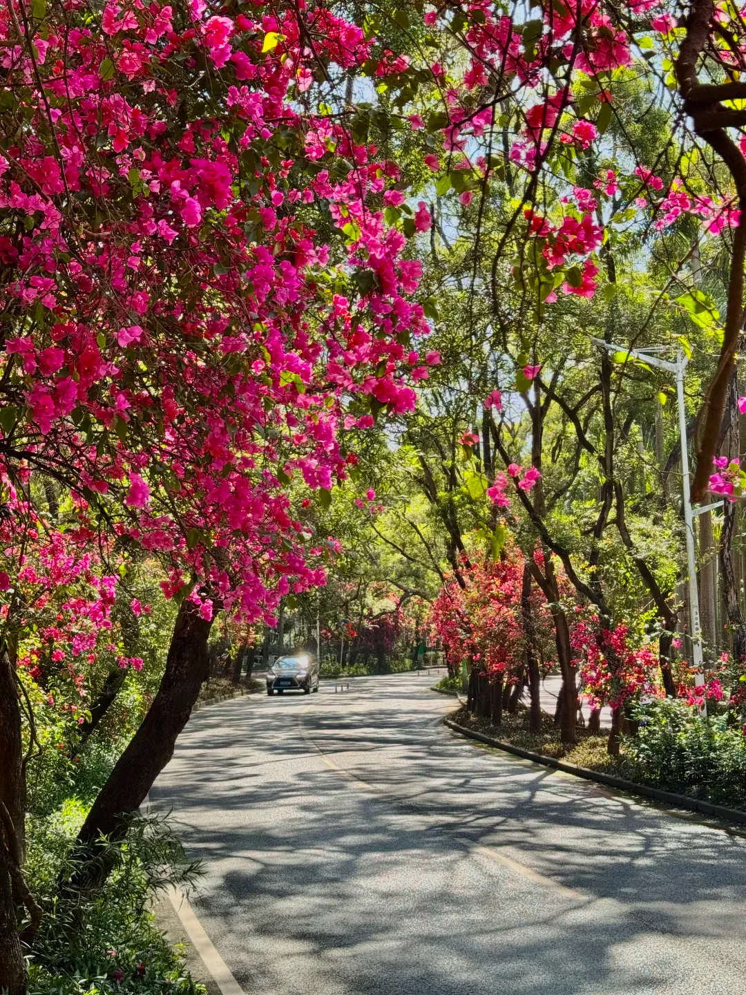 深圳的春天藏在一条条花道里🌷!整理了 6 条绝美春日花路,全部地铁可达、免费打卡,散步、拍照、遛娃都超合适,快约上朋友赴一场春日浪漫~🚇地铁:2 号线侨城北站 B 口,步行 600 米直达✨春日亮点:长约 1800 米的簕杜鹃网红花道,三角梅攀满墙头肆意绽放,粉紫艳红交织,紫荆花随风飘落铺成花毯,阳光穿过花枝洒下斑驳光影,连影子都带着花香。路边还有专属自行车道,散步、骑行都超惬意,每一步都想驻足拍照📸💡贴士:花道旁就是天鹅堡、何香凝美术馆,逛完可顺路打卡,绿荫超浓防晒压力小📍地址:南山区华侨城燕晗山郊野公园(北 1 门进)🚇地铁:2 号线侨城北站 B 口,步行 10 分钟到北 1 门✨春日亮点:从生态广场往上走,一路绿荫如盖,嫩绿色的枝叶通透发亮,风里都是青草与花香,堪称 “绿野仙踪” 本踪!穿过侨城东街、汕头街的林荫花道,路边点缀着各色小花,走到 “生命力大树” 下,抬头就是满眼治愈的春日绿意,随手拍都是森系大片💡贴士:公园蚊虫稍多,记得带驱蚊液,穿舒适平底鞋更适合散步🚇地铁:1 号线竹子林站 B2 口,步行 1.5 公里到西门✨春日亮点:藏在城市里的秘密花园,囬雁庐的红苹果装置可爱到犯规,加拿大月亮花园的森系建筑配遍地花草,随便一站都是电影截图!汇芳园的三角梅花海每年春天都超炸裂,层层叠叠的花海一眼望不到头,氛围感拉满,就算人多也抵挡不住这份美💡贴士:园区较大,可轻装出行,穿浅色系衣服拍照更出片🚇地铁:2 号线侨城东站 A 口,步行 500 米直达✨春日亮点:连接燕晗山和园博园的小众花道,属于华侨城 9 公里绿荫花海路线的核心段。道路两旁绿树成荫,紫荆花、洋紫荆错落绽放,偶尔还有三角梅攀出墙头,全程绿荫护体,防晒帽基本成摆设🌿。人少清静,适合慢慢散步,感受春日的温柔与惬意💡贴士:可和燕晗山、园博园连起来逛,走完整条华侨城花海路线超治愈🚇地铁:7 号线下沙站 D 口,步行 800 米直达✨春日亮点:2026 新晋网红春日花道,一路开满五彩花海,粉色勒杜鹃、红色木棉花、黄色风铃木交相辉映,搭配翠绿的枝叶,把春天的色彩揉进了这条路上!花海沿着滨河大道铺开,视野开阔,拍照超有氛围感,吹着微风散步,满眼都是春日美好💡贴士:路边有观景步道,拍照注意避开车流,下午 4 点后光线更柔和🚇地铁:2 号线莲塘站 A 口,步行 600 米直达✨春日亮点:深圳超火的小众簕杜鹃花海巷,三角梅从墙头倾泻而下,形成浪漫的花墙拱门,粉紫相间的花海把窄窄的巷子包裹,满满的春日氛围感,随手拍都是复古文艺大片。藏在城中村的小众美景,人少景美,适合喜欢安静打卡的宝子- 路线推荐 :华侨城花海环线「香山中街→燕晗山郊野公园→侨城东街 / 汕头街→园博园」,全程 9 公里,慢慢逛 4 小时左右,一路花海绿荫不重样