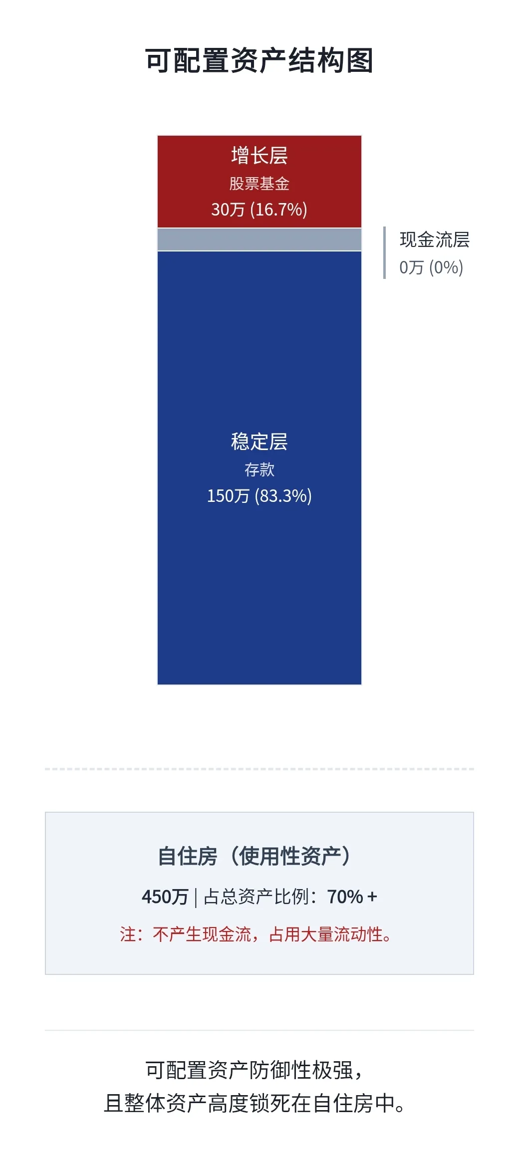 房子当然重要,尤其是深圳家庭,房子往往都是最大的资产。但自住房首先是生活资料,不是可以随时拿出来调度的底盘。你不能说账面上有几百万房产,就等于家庭财务已经很稳了。自住房不但不产生现金流,往往还在吃现金流。