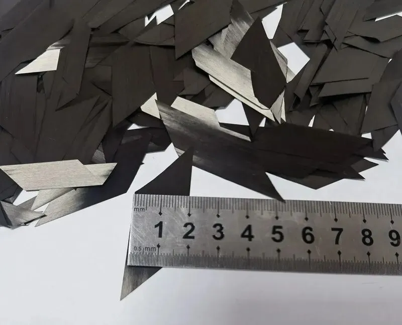 2、碳纤维束经展宽后纤维准直性得到极大提高,所生产的片状短切纤维,表面平整、宽度均匀,不仅具有较高的力学增强作用,还具备独特的视觉外观,被广泛应用于体育器材、汽车制造等领域。